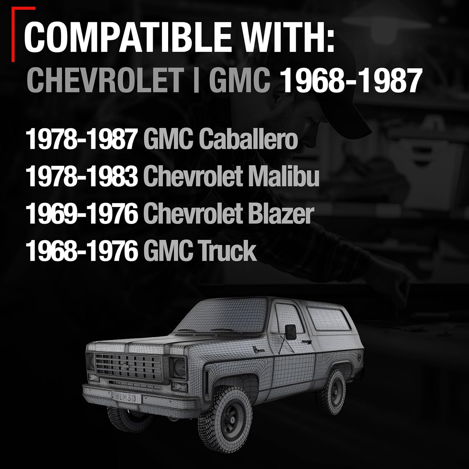 COMPATIBLE WITH: 1965-1989 Buick models; 1965-1990, Oldsmobile models; 1967-1989 Pontiac models; 1967-1996 Chevrolet models; 1973-1996, GMC models; 1967-1968 Cadillac . Designed for seamless replacement across various positions including front/rear left driver side and front/rear right passenger sidet of your vehicle