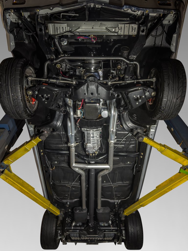 QA1 Performance Suspension Front & Rear – adjustable coilovers, tubular A-arms, heavy-duty sway bars, and trailing arms for pro-touring handling