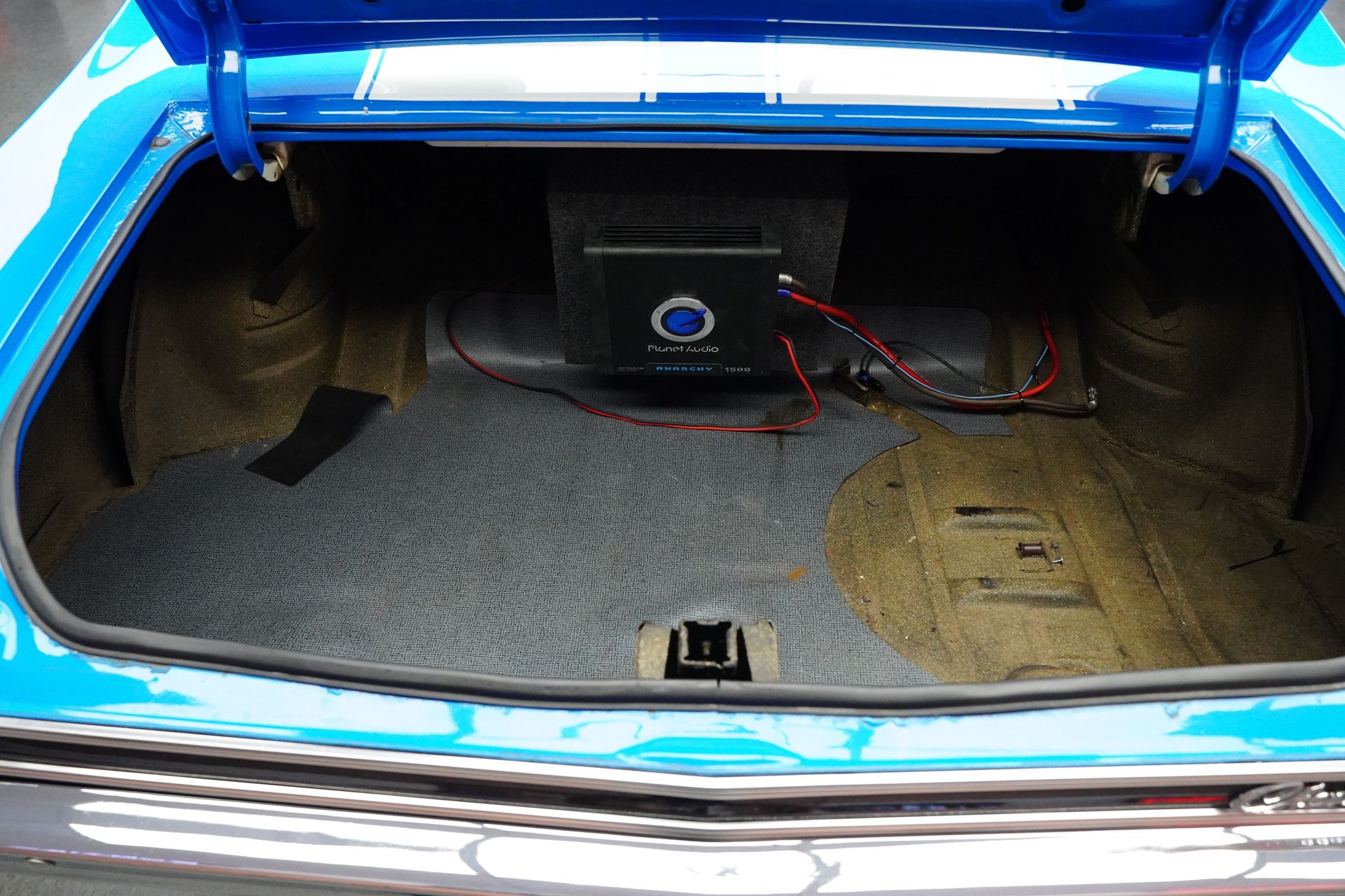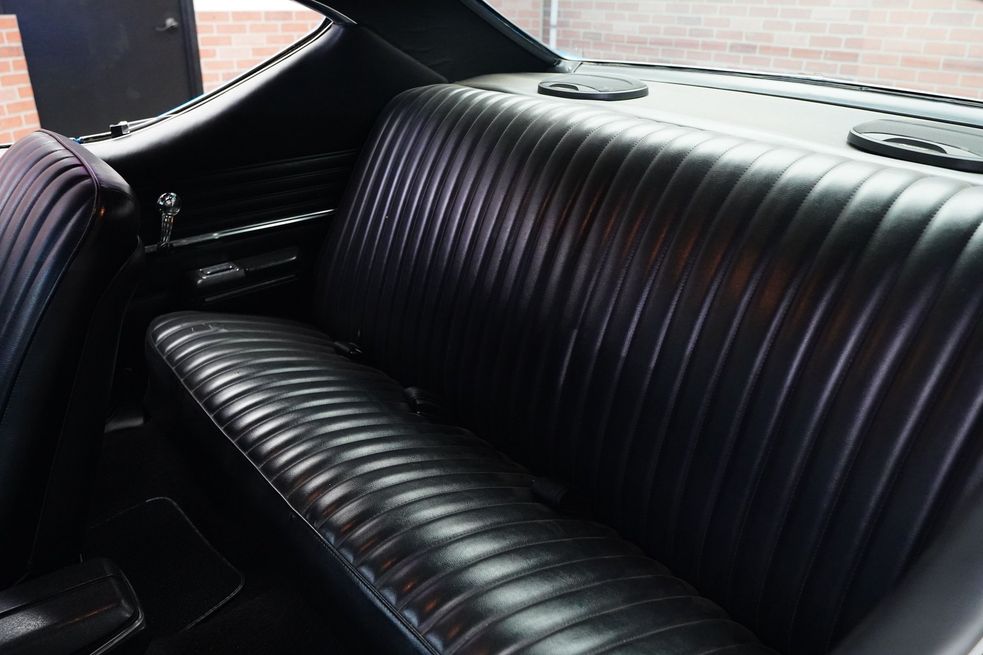 The car left the factory wearing a two-tone Palomino Ivory over LeMans Blue Metallic paint. The Chevelle is enhanced by a set of chrome Cragar SS wheels wrapped with Cooper Cobra Radial GT raised white lettered tires staggered 235/60R15 front and 275/60R15 rear for a confidant muscle car stance. Front suspension is a-arm with coil and shock. Has a new master braking system with vacuum pump. Stopping power is provided by front power disc and rear power drums.