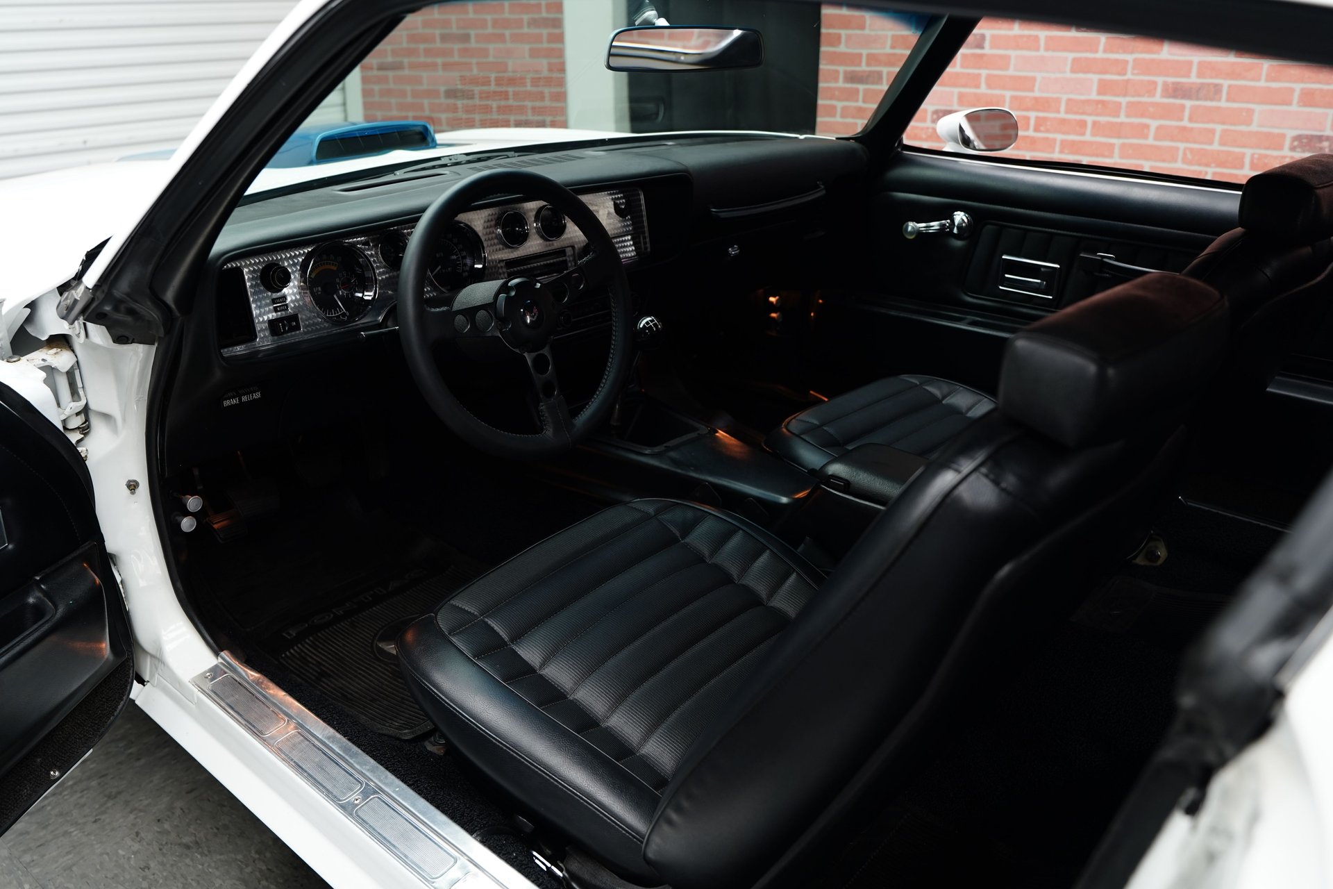 Since undergoing restoration in 2015, this Trans AM has reportedly been garage-kept in Massachusetts. The exterior was repainted in its original Polar White (code 10) with blue stripes. Equipment includes a Shaker hood, vented fenders, dual color-keyed racing mirror caps, and a dual exhaust system. The reportedly correct, KR-stamped 15-inch wheels with PMD center caps are wrapped in BFGoodrich Radial T/A raised-white-letter tires.