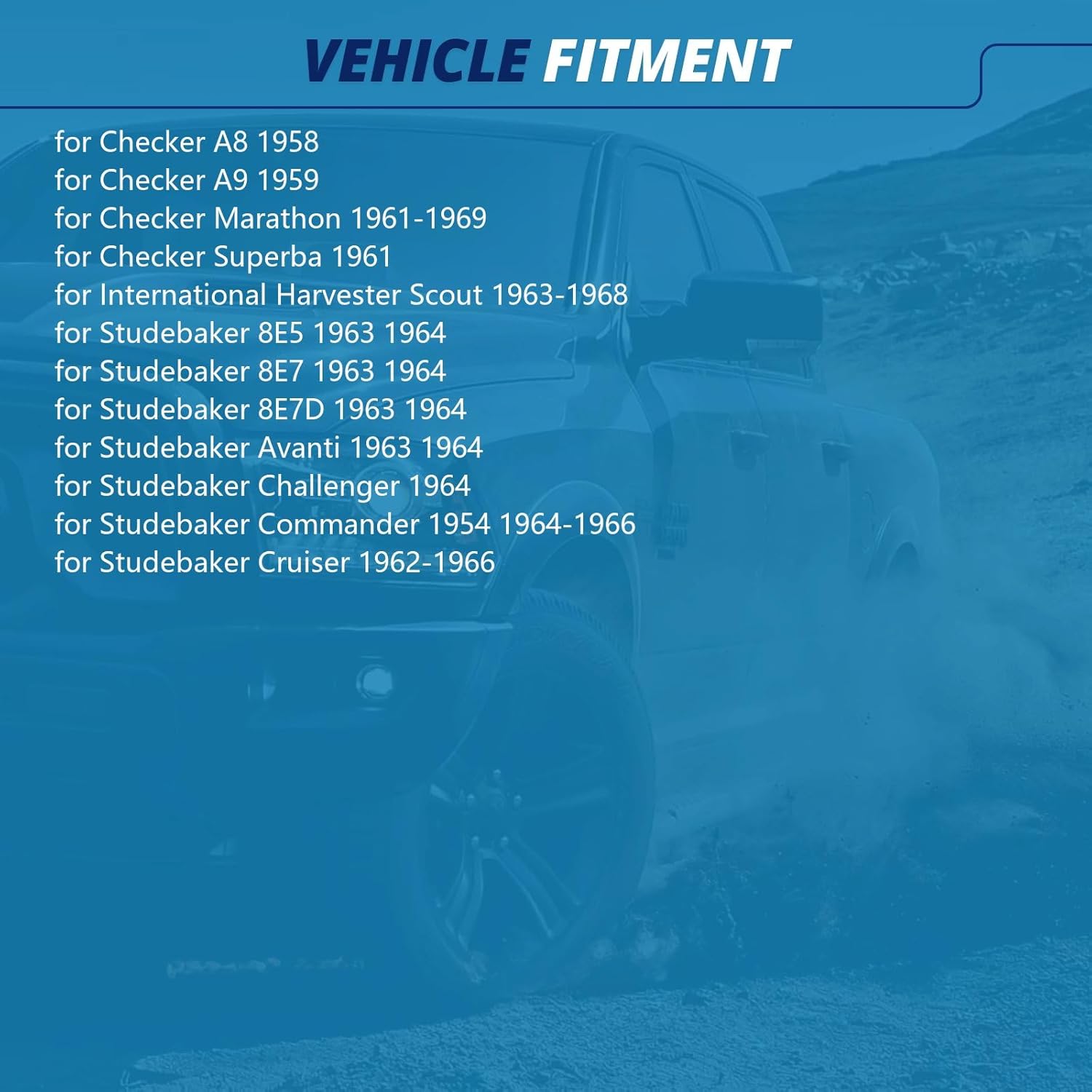• Vehicle Compatibility: Rear Wheel Cylinder Rear Brake Cylinder for Studebaker Commander 4.6L 1965 1966, for Studebaker President 4.7L 1956-1958, for Studebaker Cruiser 3.2L 1965 1966, for Studebaker Cruiser 4.7L 1962-1964, for Studebaker Daytona 4.2L 1962-1964, for Studebaker Daytona 4.6L 1965 1966, for Studebaker Avanti 4.7L 1963 1964