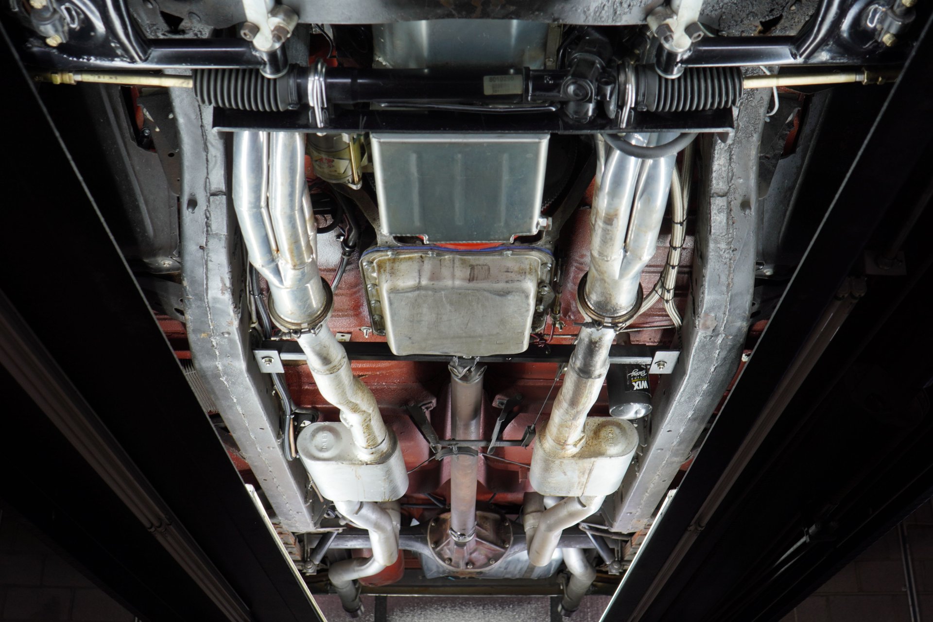 The exterior is finished in Sierra Gold and Adobe Beige and underwent a restoration. There is no data plate, so we are unsure of factory exterior paint colors. Exterior details include chrome bumpers and trim, dual mirrors, and dual exhaust outlets. Eagle aluminum 16-inch wheels are mounted with 245/50ZR16 up front and 255/50ZR16 out back with DOT date codes of 2019. Front suspension is CPP tubular A-arms with coil and shocks and rear suspension is leaf spring with shock. Braking is handled by front disc and rear drum.