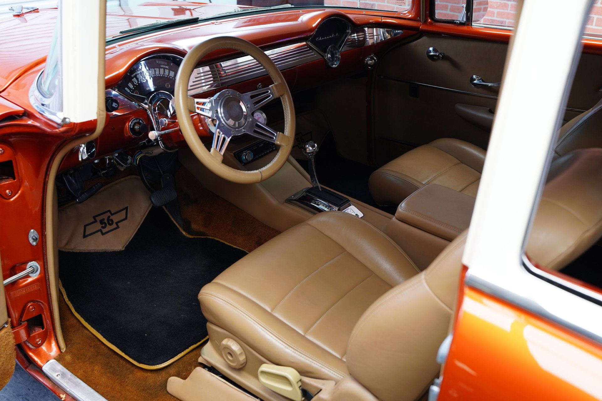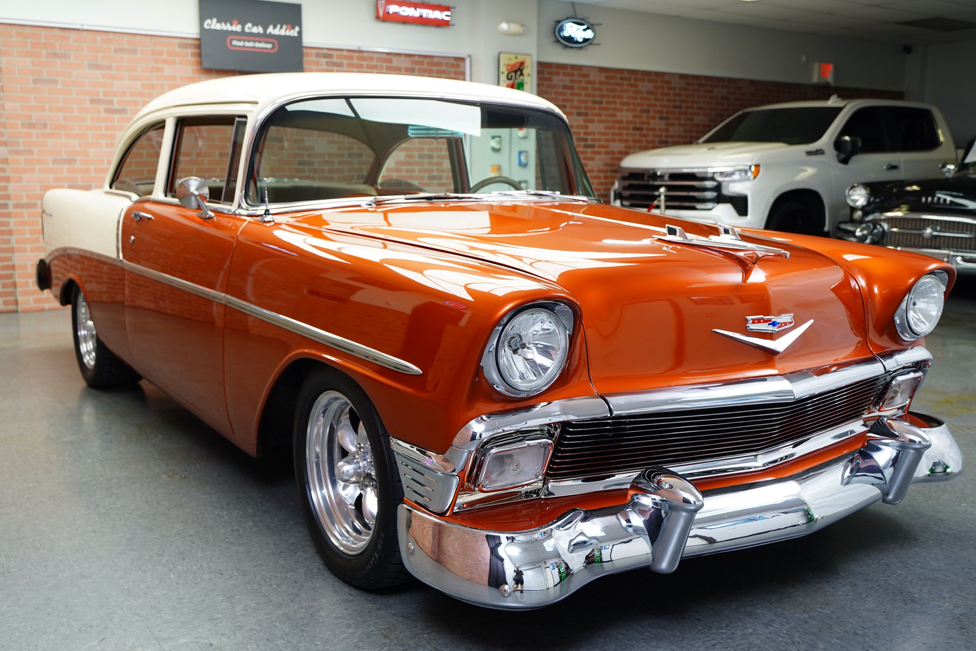 Classic Car Addict is proud to present this 1956 Chevrolet 210 for sale in our Mesa, Arizona showroom. The Chevrolet Two-Ten, or 210 was the midrange model of the Chevrolet car from 1953 to 1957. It took its name by shortening the production series number (2100) by one digit to capitalize on the 1950s trend toward numerical auto names. The numerical designation “210” was also sporadically used in company literature. It replaced the Styleline DeLuxe model available in previous years. The Two-Ten was discontinued after the 1957 model year to be replaced by the Biscayne.