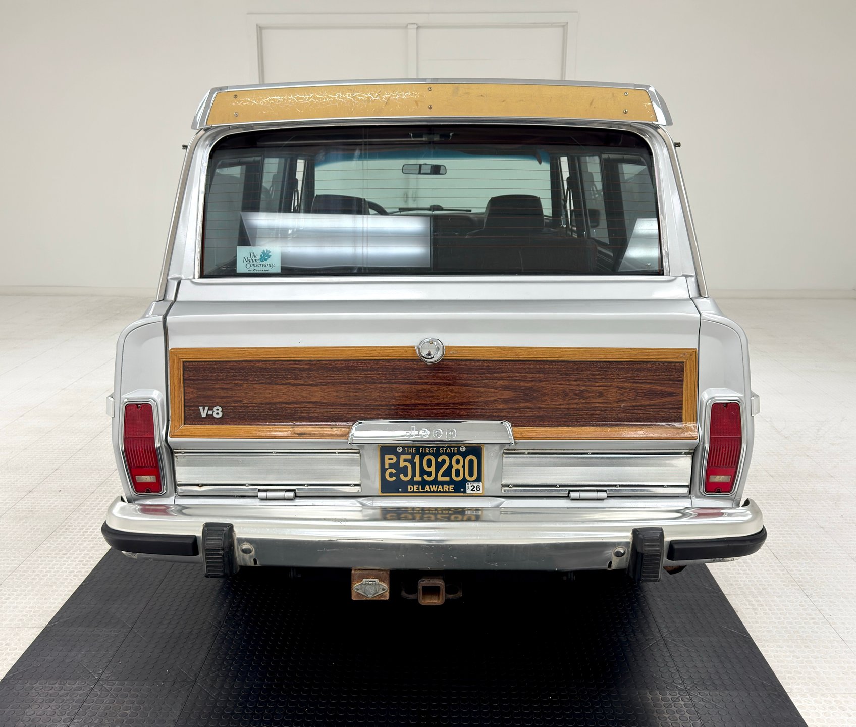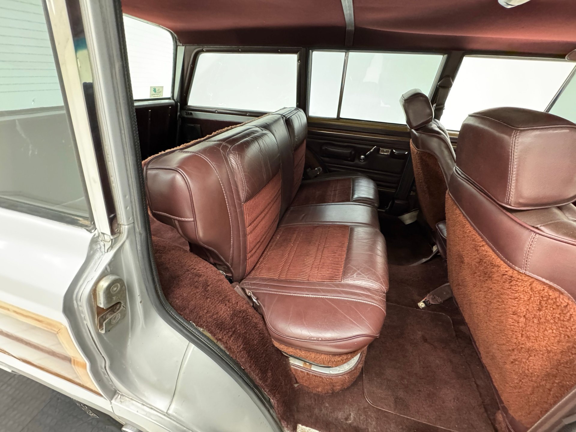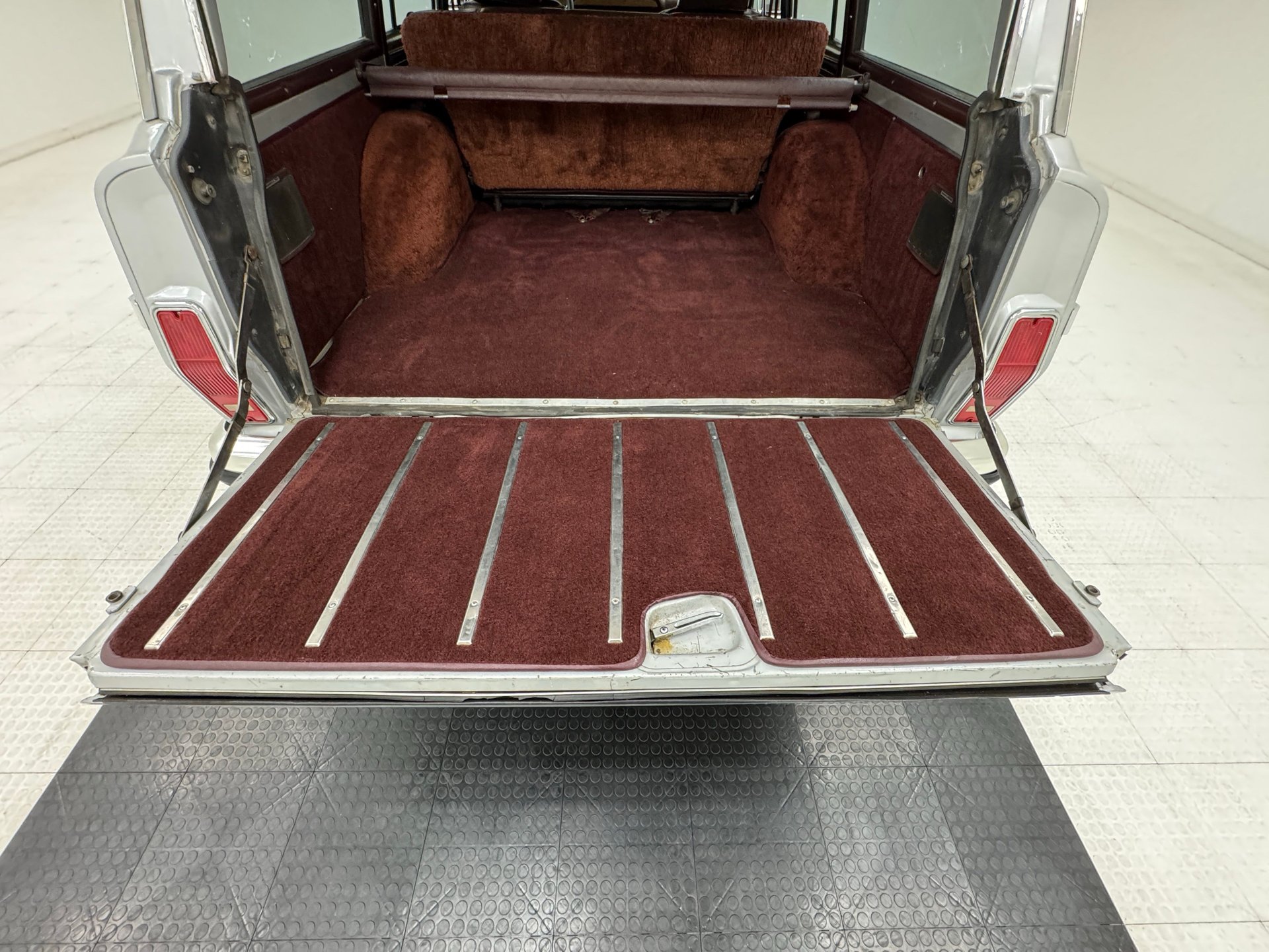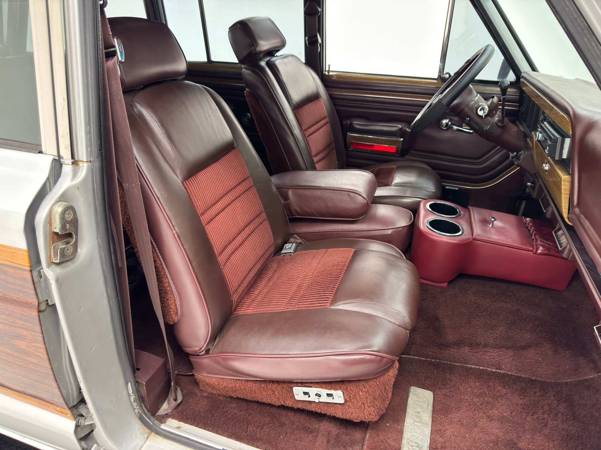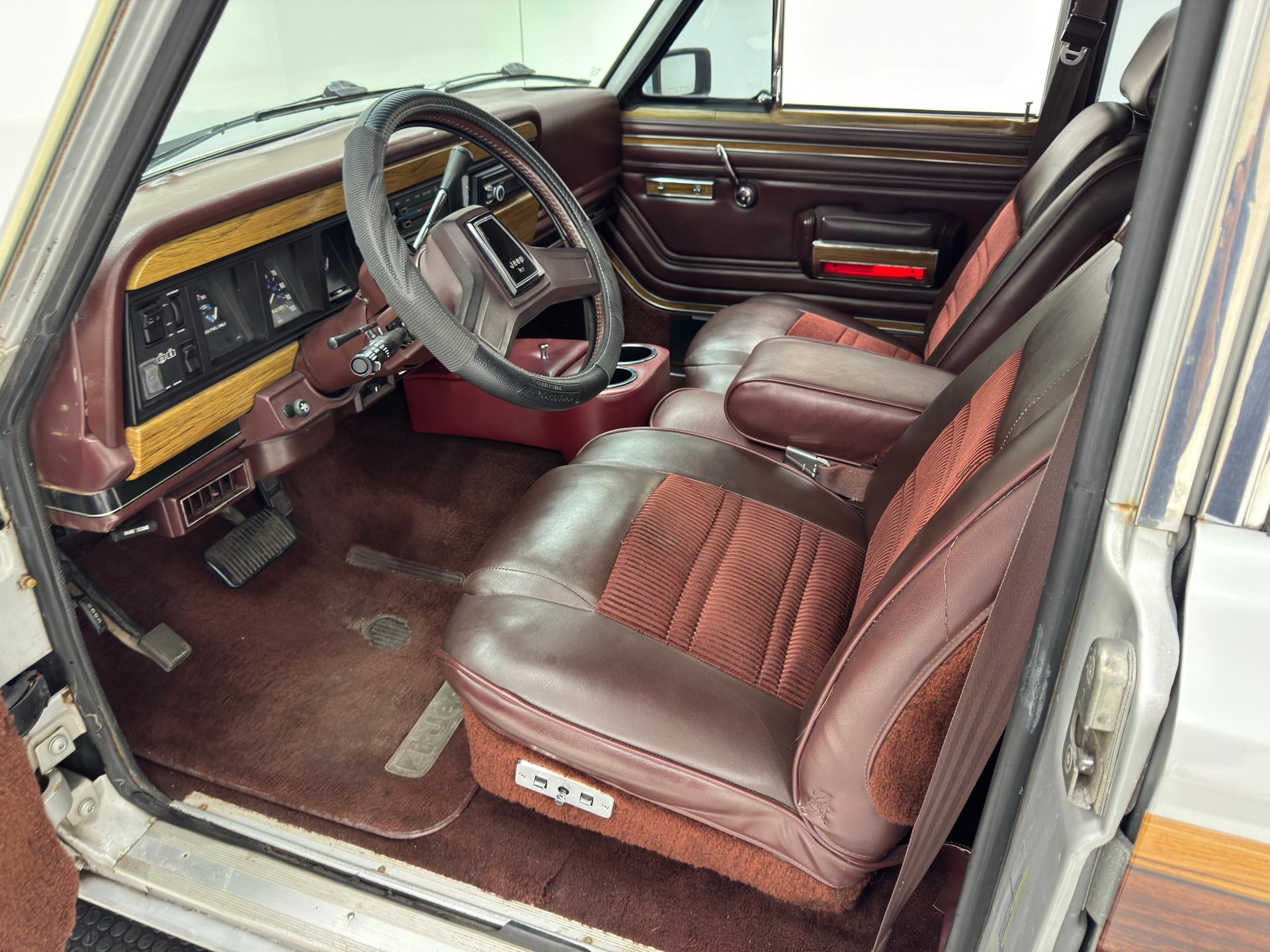 The boxy shape, wide track stance, the iconic woodgrain panels. What's not to love on this example in Silver? Single headlights front a handsome fascia with a raised detail on the hood and this one sporting fog lights on the bumper in front of a purely horizontal grille. It also has a roof rack and rear spoiler along with tinted glass all the way around. The standard 15-inch cast aluminum wheels carry 235/75R15's with an early 2019 date code and letters out in lieu of the white line tires shown in the sales catalog. The wood grain applique is frames in plastic rails depicting a lighter wood for a classic contrast that is ultimately desirable right now. Paint and trim are generally nice with imperfections noted as some cracking and uneven filler on the rocker panel, bubbling on other areas, chin scuffs, bubbling clear over woodgrain, and clearcoat oxidation on the wheels.