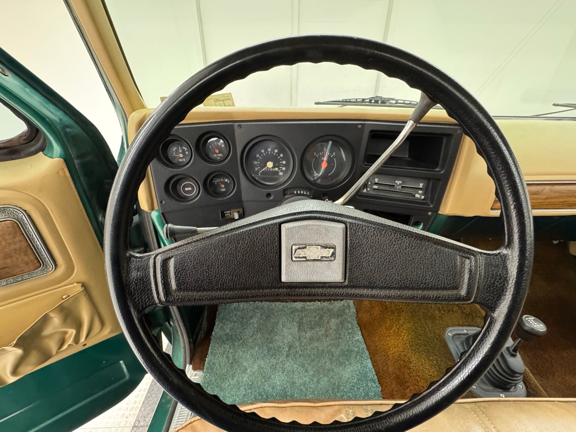 Old trucks are like old jeans, a bit worn but super comfortable. This '77 is a straight shooter, no fake fronts and no apologies. The trusty 350 comes to life but knowing we're on tires from 1993, we do a super short loop, circle really, just to make sure she runs and to check functionality. The brakes are very touchy and the heater blower gave up the ghost, but all other functions, and there aren't many, still work as they should. While Classic Auto Mall represents that these functions were working at the time of our test drive, we cannot guarantee these functions will be working at the time of your purchase.