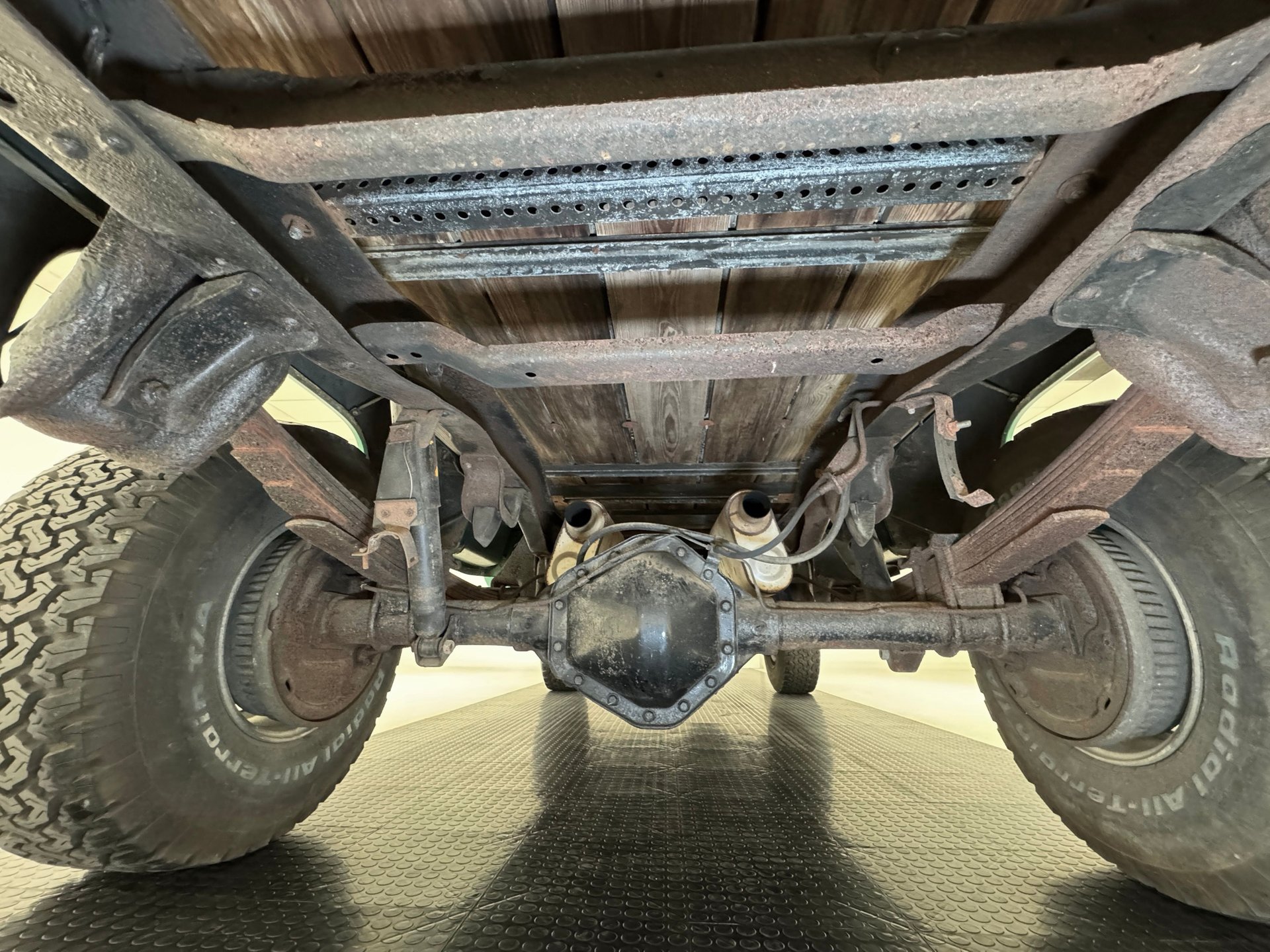 Under the hood, a driver quality 350ci V8 awaits with a 4-barrel carburetor and a TH350 3-speed automatic bolted to a transfer case that can send power to both the 14 bolt rear and 10 bolt front differential. Surface rust and patina but plenty of room to work on things!