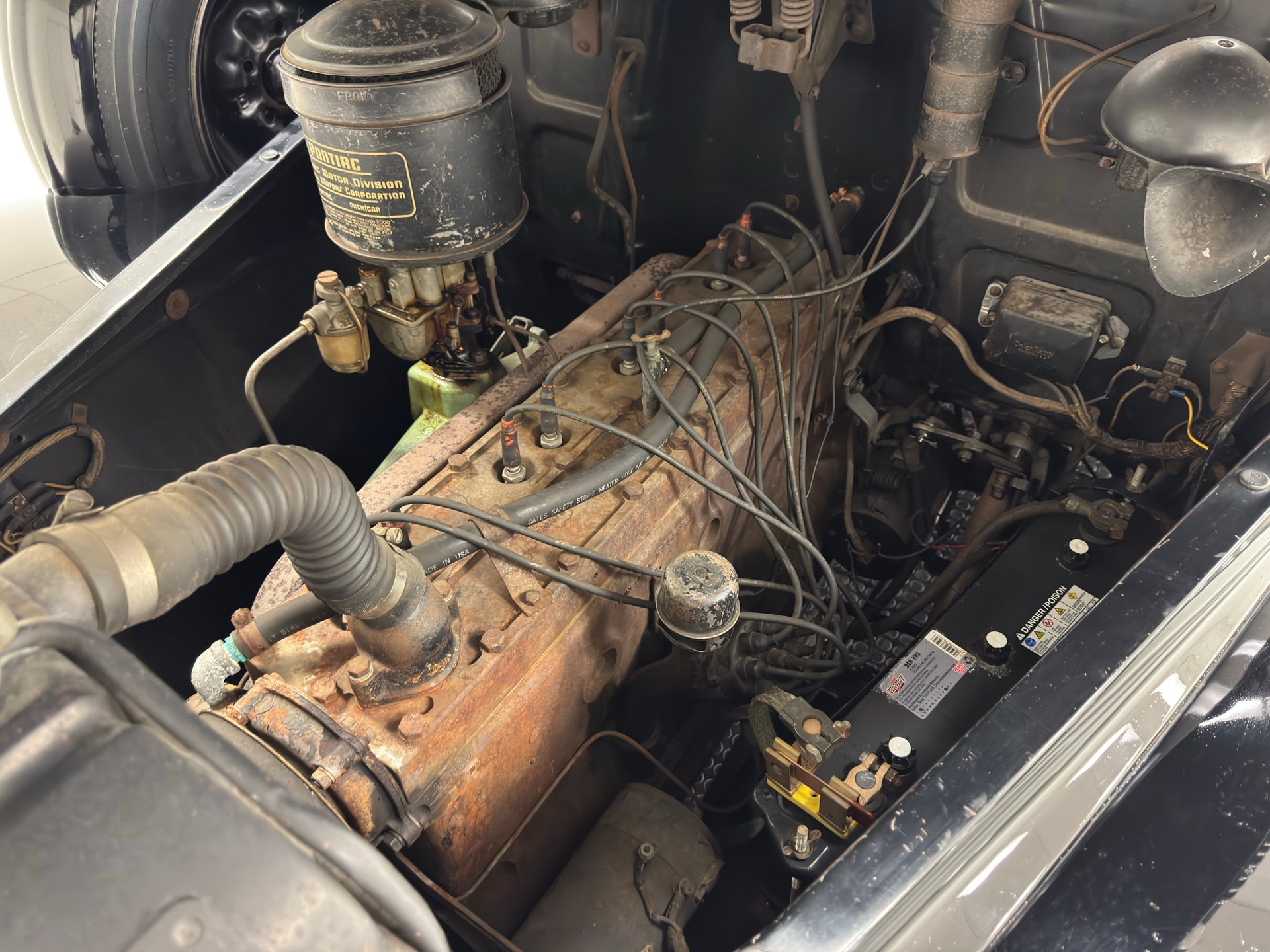Under the hood is a driver quality 248.9ci L-head inline 8 cylinder with a 2-barrel carburetor and a horsepower rating of 100. It's mated to a 3-speed manual transmission which routes power all the way back to the 4.30 gears. The car runs on a 6 volt system and has no radio, no power steering, and no air conditioning.
