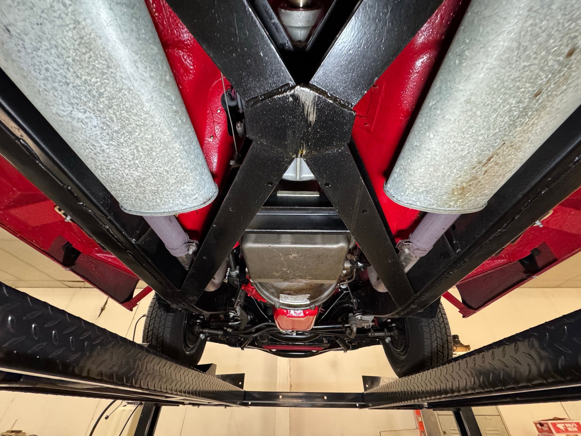 Bring some long mirrors to the show, you're going to want to let everyone see just how spotless and bright the underside is with a glossy black X-frame, satin red underbody, and dry conditions on a better than new presentation. Here we have power drum brakes at all four wheels, dual exhaust the flow through stock style mufflers, and suspension that consists of coil springs in front and leaf springs in back.