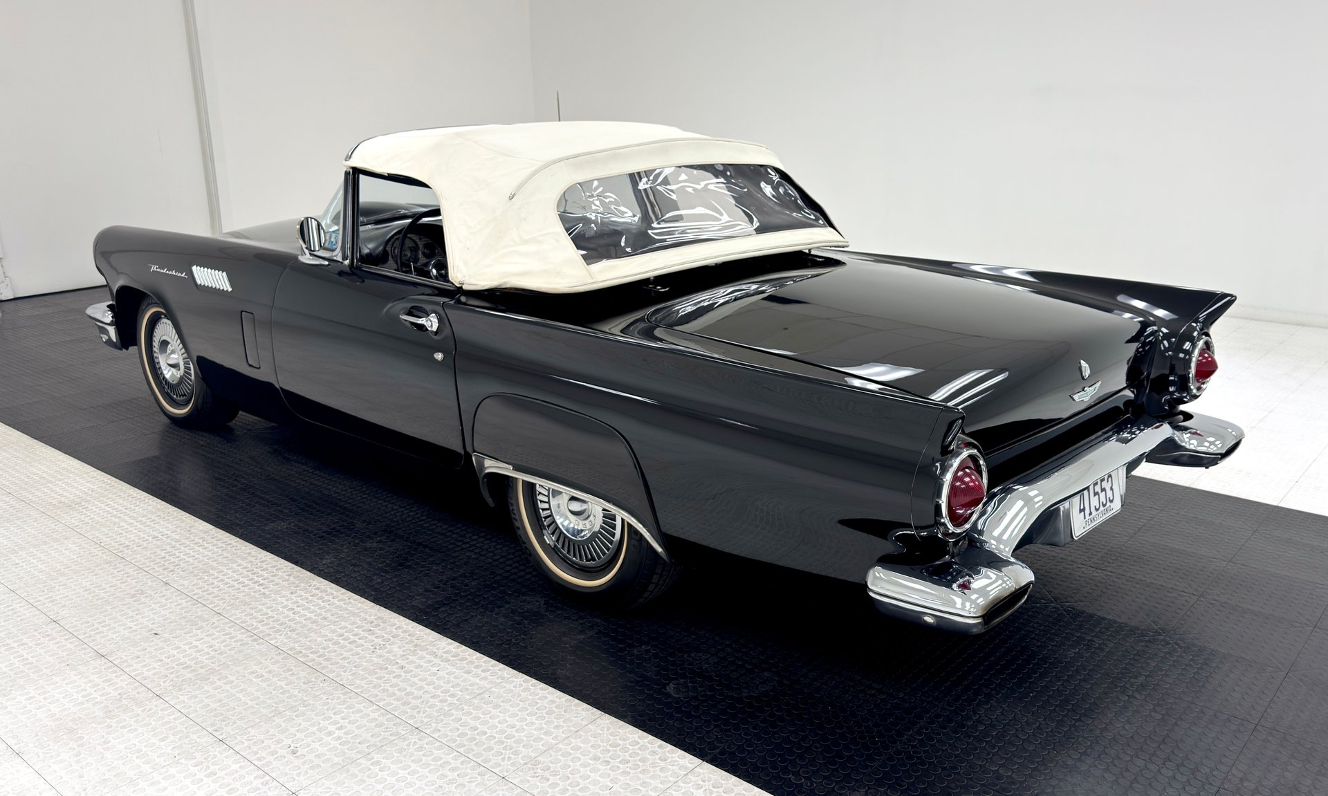 For consignment, a 1957 Ford Thunderbird convertible with a title verified 57,477 actual miles. This is a 3 owner car with two tops that really make it three different cars, a hardtop coupe, a soft top, and of course, a free wielding drop top!