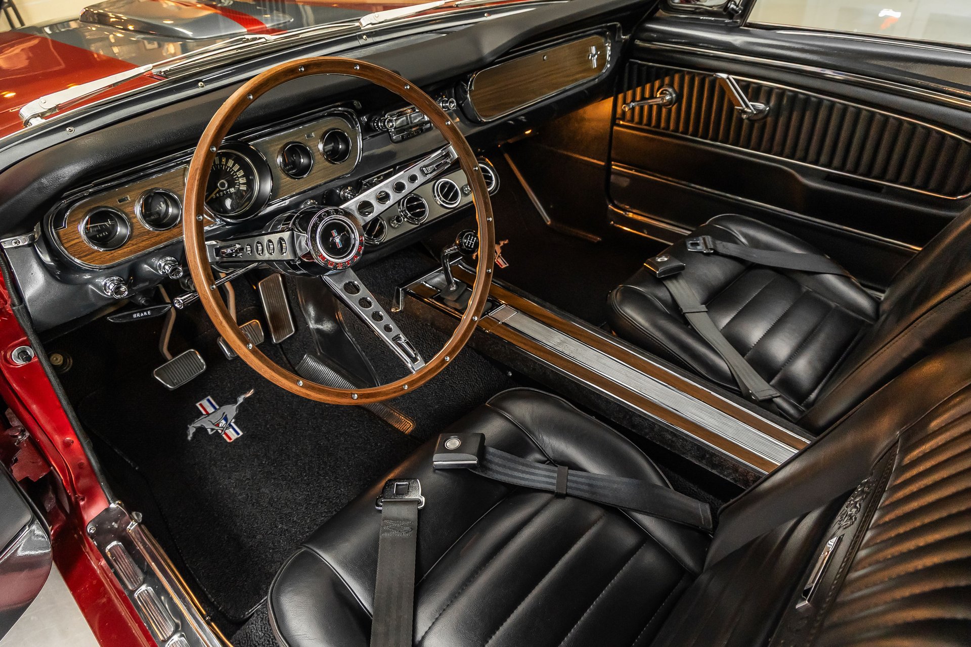 The interior has undergone the same level of restoration as well! The interior has been finished back to its stock spec! Inside, you'll find the Black vinyl bucket seats with the Center Console & fresh black carpeting! On the Vinyl dash is stock gauges, Aftermarket Air Conditioning, 3-spoke wood steering wheel, & stock appearing radio! This Mustang is beautiful inside & out and is ready to race!