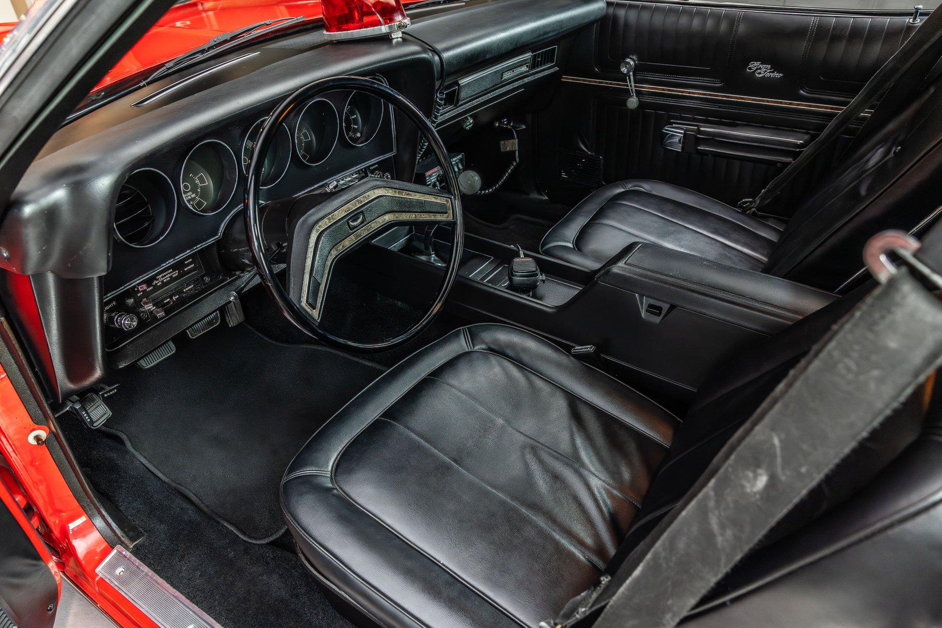 The interior of this Torino is gorgeous and in great condition! Take a look inside to see this Torino sporting Front Bucket Seating, Rear Bench Seating, Front and Rear Seat Belts, Black Vinyl Upholstery, Black Carpeting, Stock 2-Spoke Steering Wheel, Center Console, Hurst Shifter, Factory Style Gauges, Factory Style Audio System, along with a Spare Tire that's located in the wonderfully refinished trunk. The undercarriage of this Torino also looks great! Take a look underneath to see the nice condition of the Body Color Matched Painted Floorboards, New Fuel Tank and the New Exhaust System with Flowmaster Mufflers!