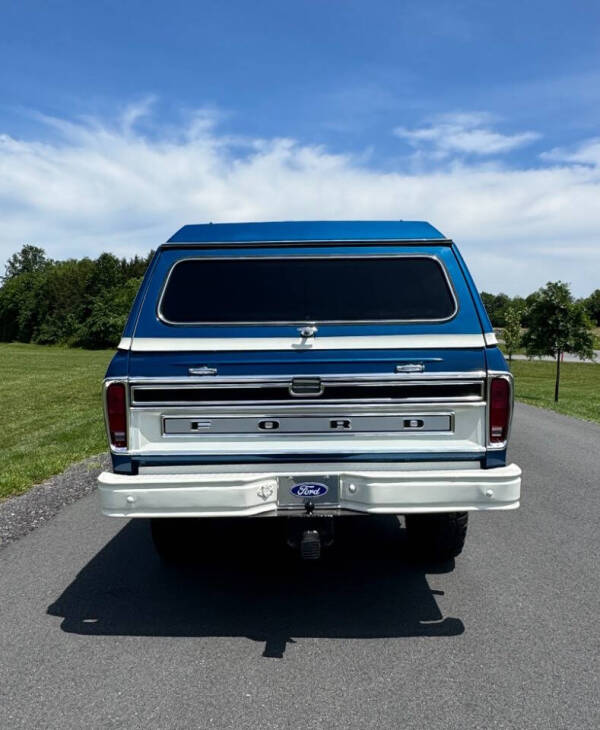 400 CID Engine, Automatic Transmission, 4X4, Frame up restoration with painted floors, A/C, Rare Original Ford Camper top, Wagon wheels, 33x12.5 in tires, Bright blue metallic with white, pro polished brightwork, Marti Report