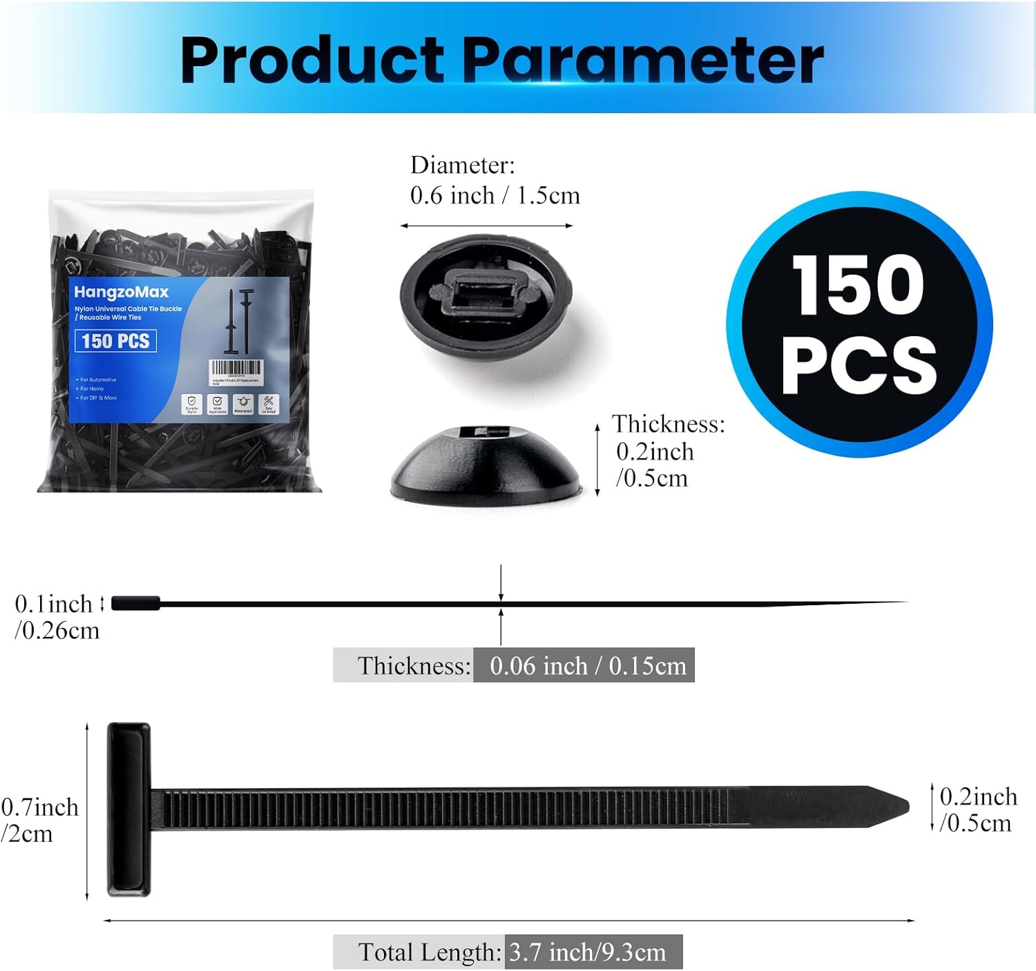 Compact Design, Easy to Carry: The nylon cable tie buckle with a compact mini size. Even after assembling 150 pieces, the total takes up only a tiny space in the glove compartment or the vehicle toolbox, not occupying any regular storage area. What's more, its heavy duty nylon material can immediately provide stable support in emergency situations (such as sudden loosening of guard panels or detachment of mudguards on the roadside). There's no need to rush to a repair shop. It is a practical spare part in the owner's emergency kit