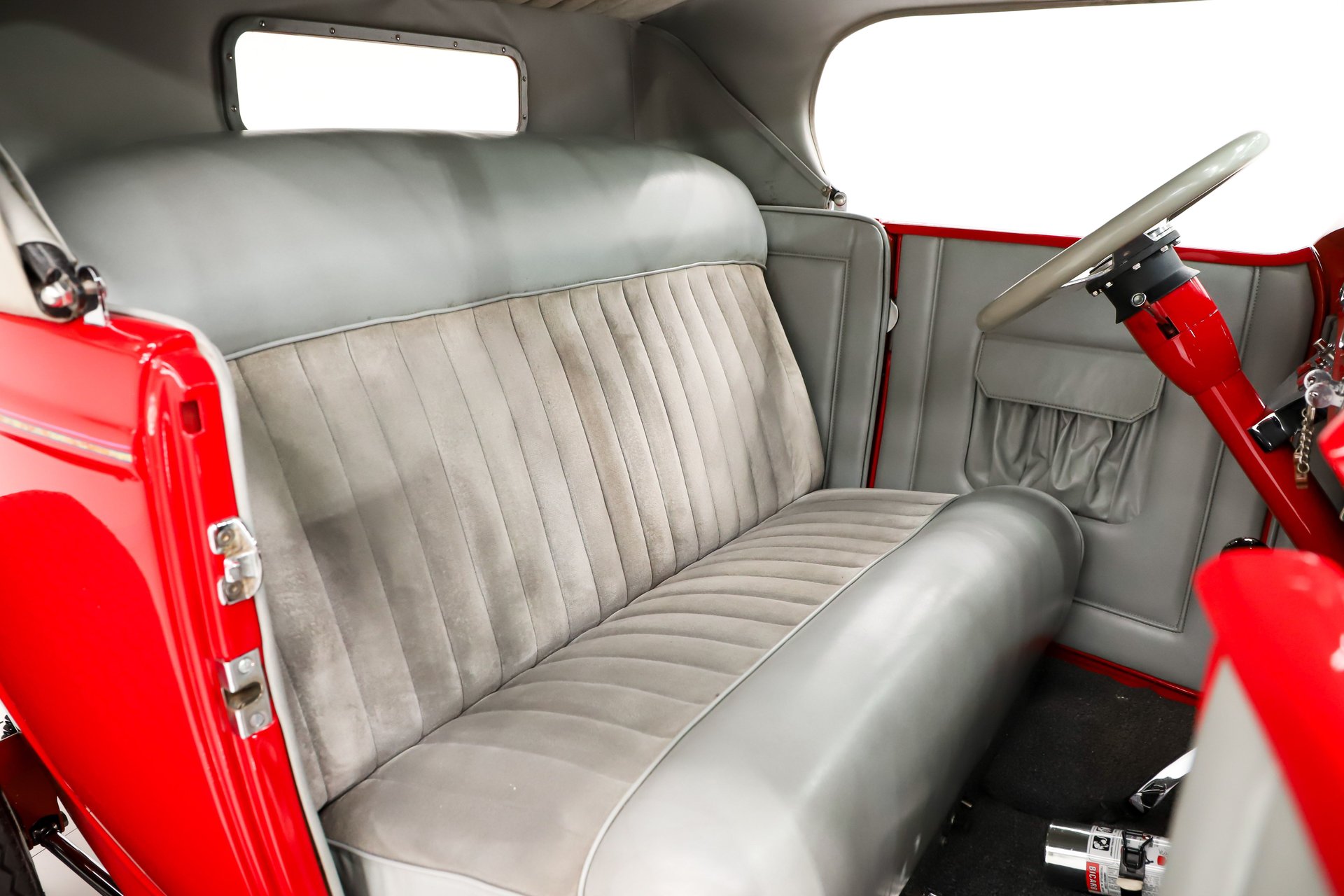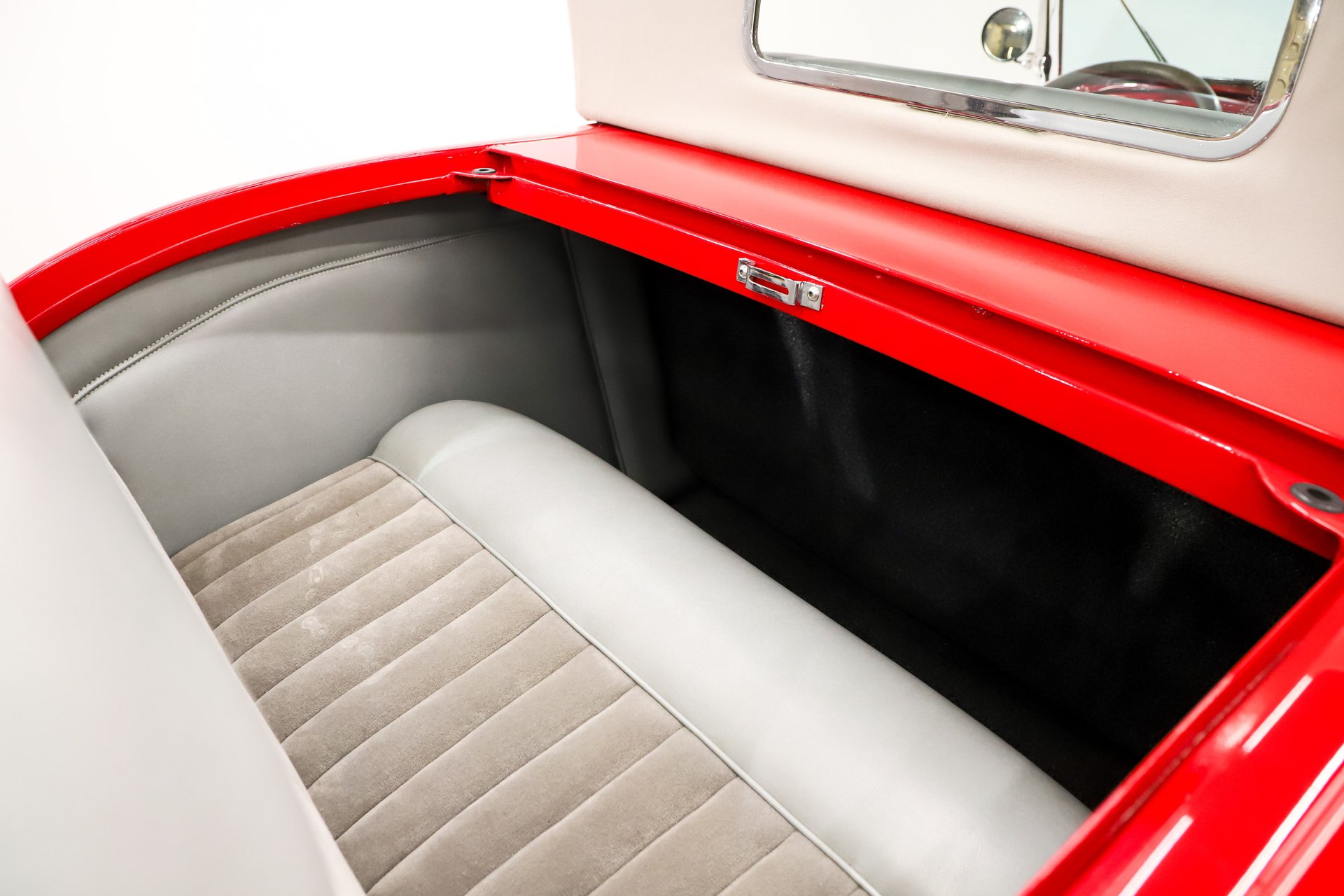 TRUNK COMPARTMENT: It's actually a rumble seat! It's completely finished and upholstered inside and the seat matches the front seat. Just step on the tire and hop on in!