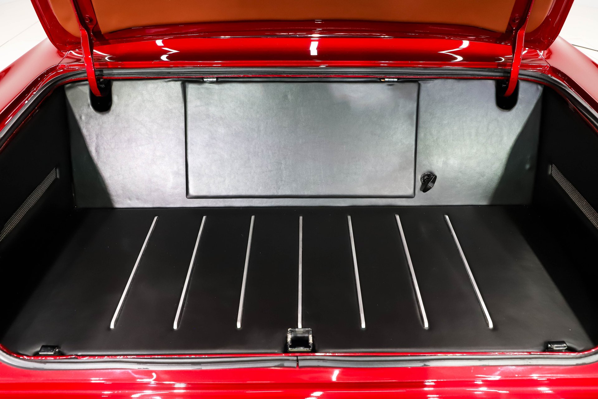 TRUNK COMPARTMENT: It is completely boxed and upholstered, even under the trunk lid. The battery is relocated behind the panel, it has a discount switch and remote terminals under the car.