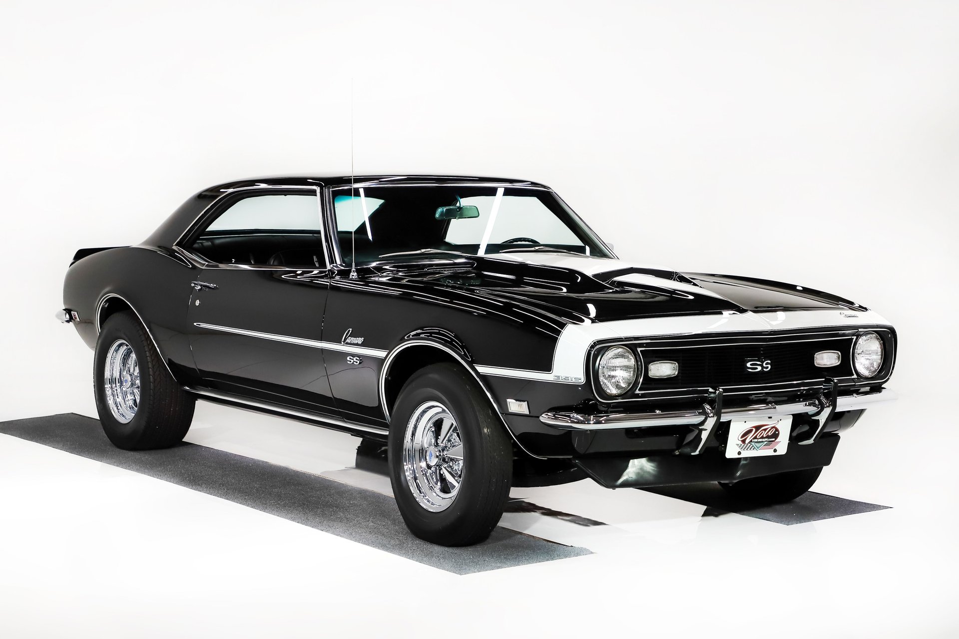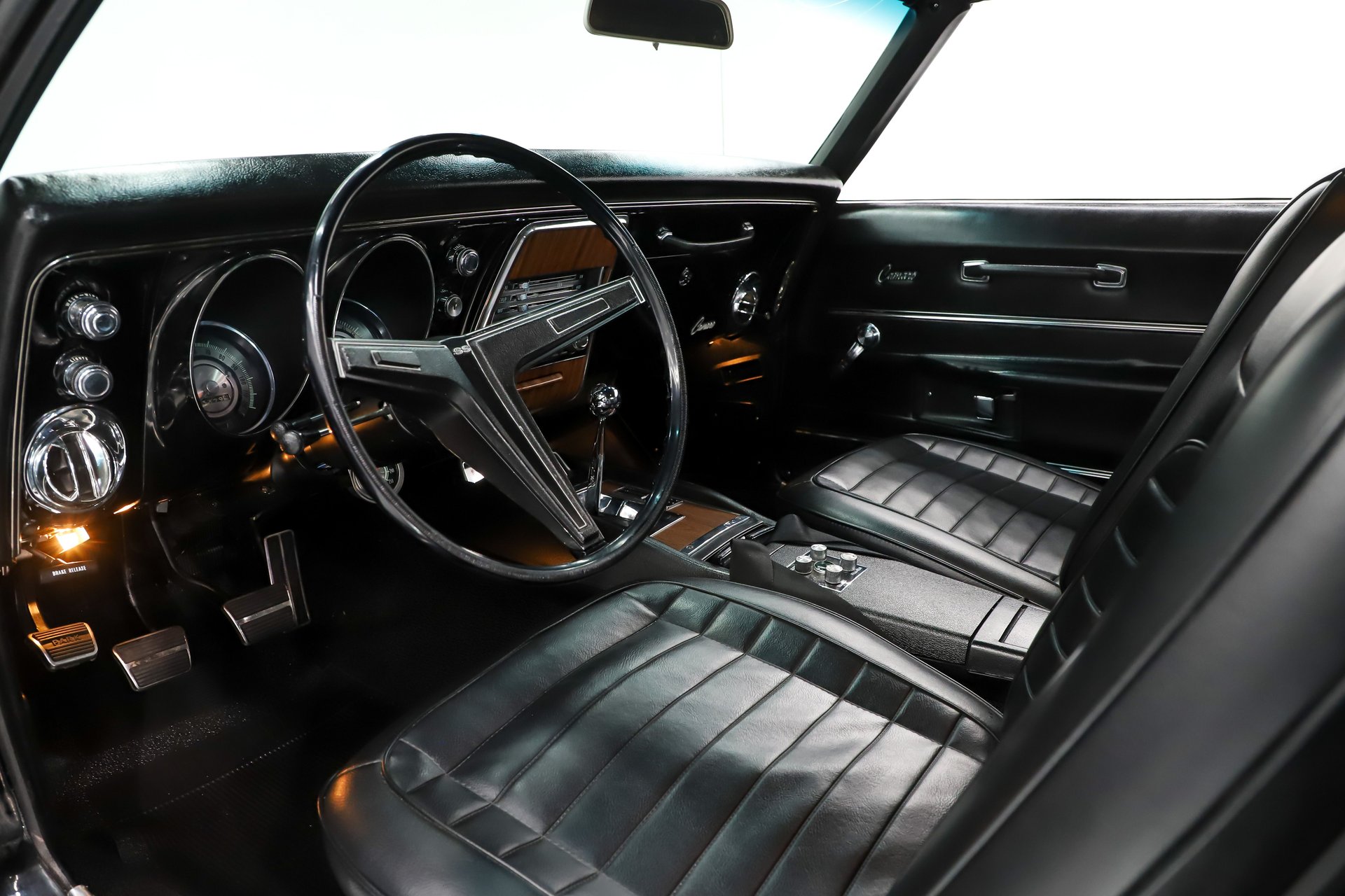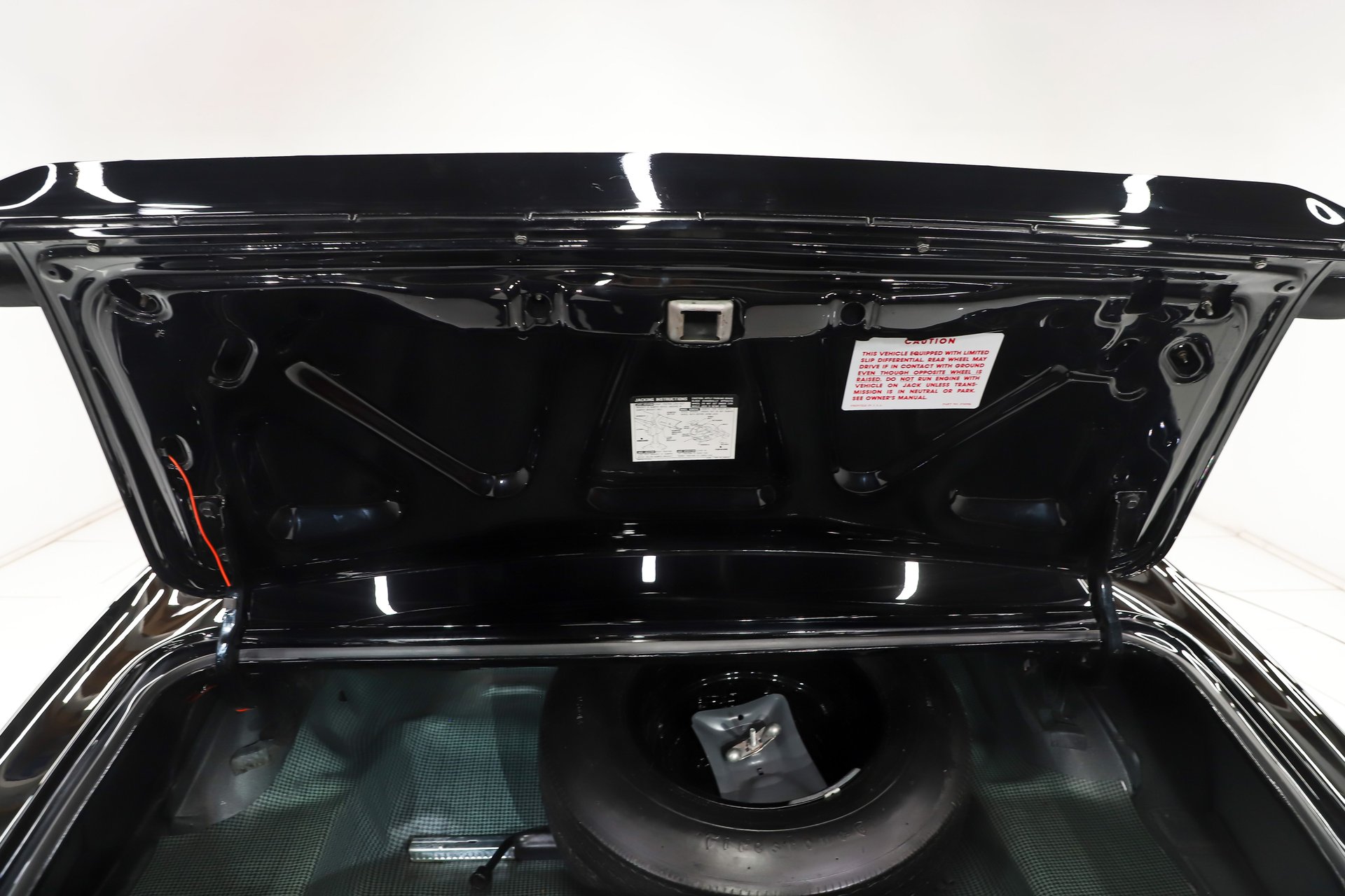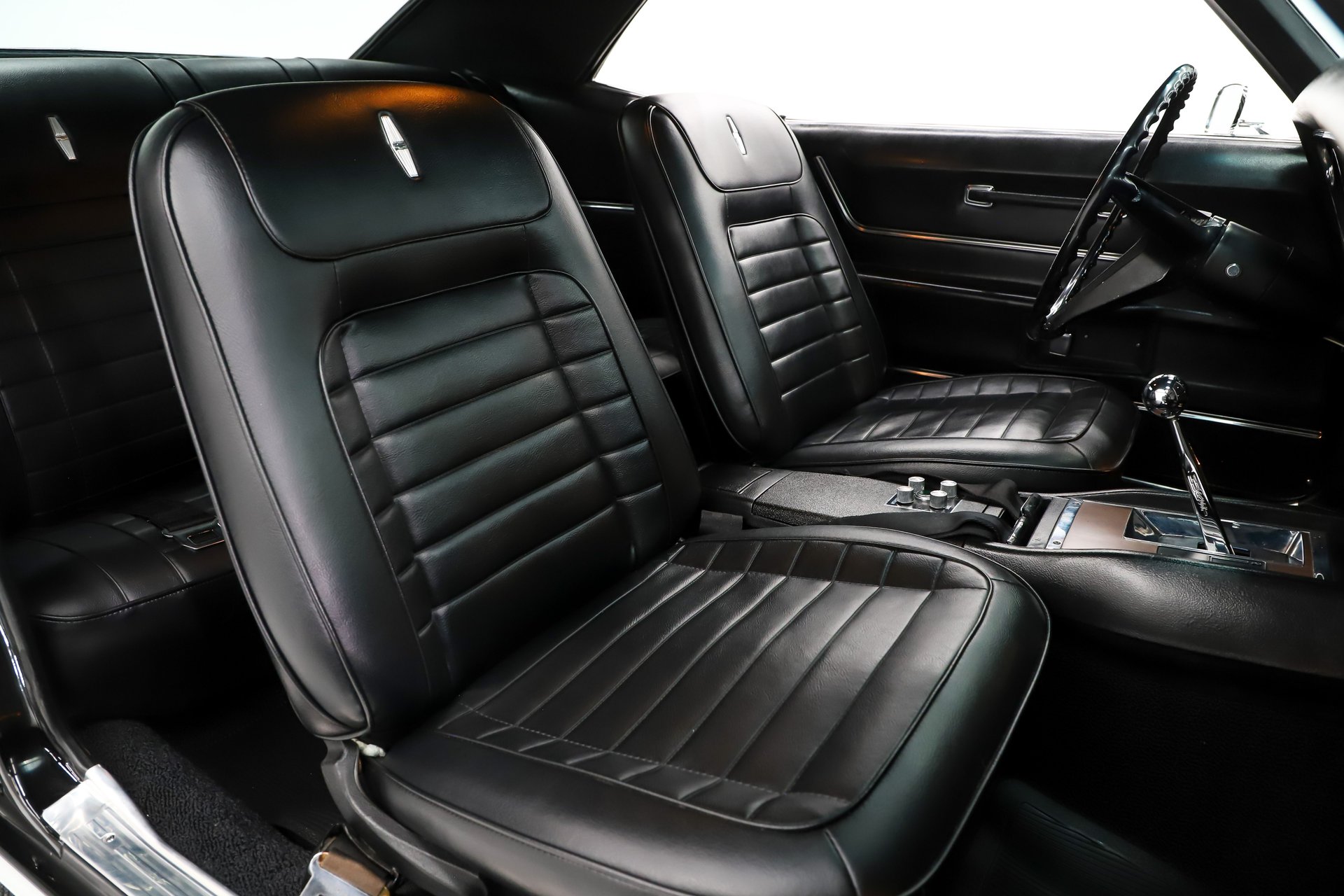 EXTERIOR: The fit and finish is amazing. The sheet metal is perfectly aligned and straight. It has the fiberglass stinger hood and spoilers. Repainted its original Tuxedo Black without a vinyl top. The finish is better than the day it left the factory. Every piece of chrome and trim has been restored or replaced, it has optional bumper guards. Every weather strip and seal has been replaced; glass is crystal clear. Correct T-3 headlights. It's sitting on a set of chrome 15 inch Cragers, obviously wider in back and they're wearing Mickey Thompson tires.
