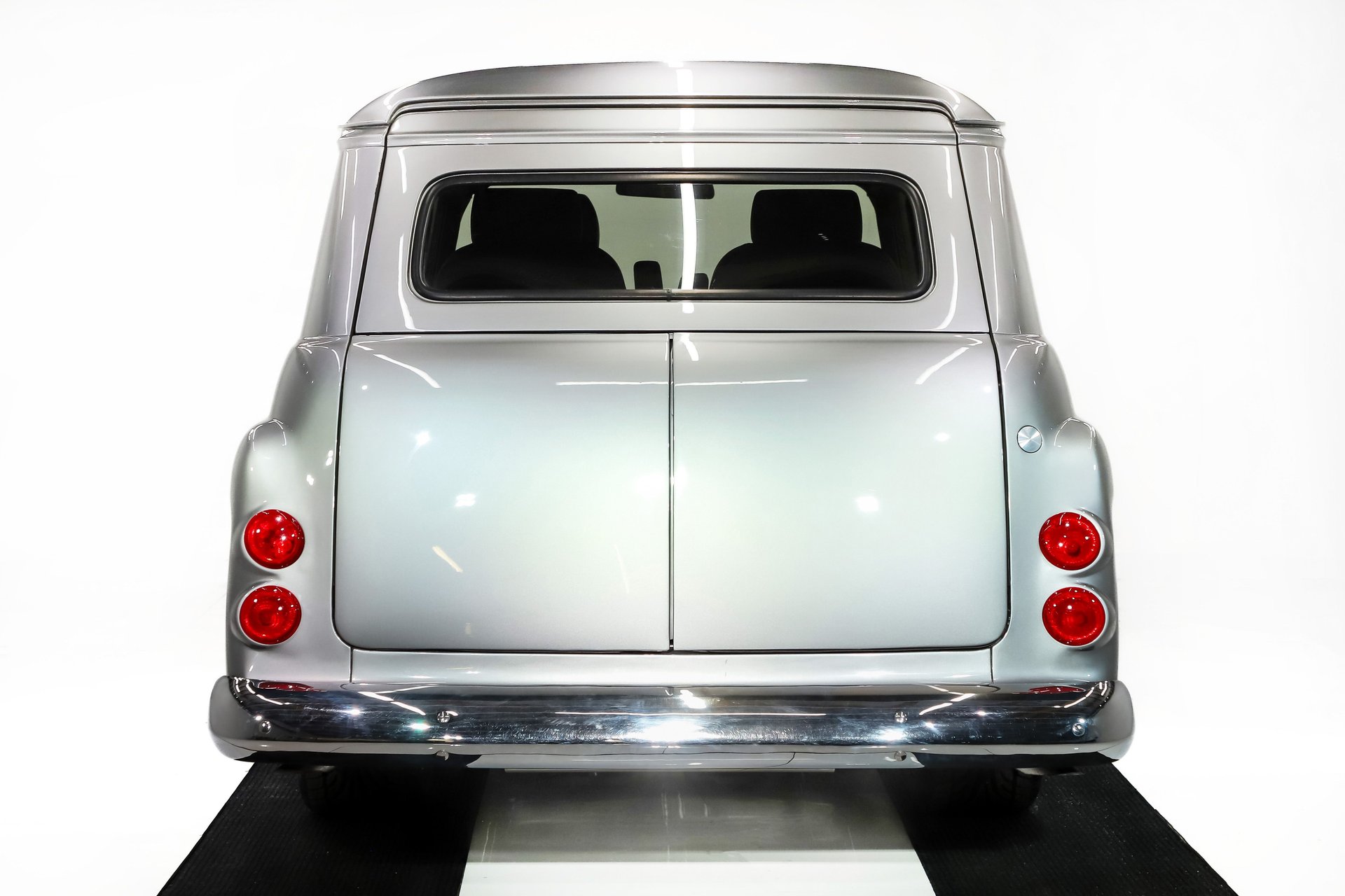 EXTERIOR: This certainly doesn't look like it did in 1958! It was really cleaned by removing a lot of trim and emblems. The fuel door was filled and a slick pop up flush mount filler was relocated. The taillights were converted from 2 to 4. The biggest task was converting the tailgate into split doors on the bottom with hidden hinges. The body is absolutely straight and smooth from the rockers to the roof. It has a smooth and glossy pewter metallic paint and a clear coat finish. Another very unique feature is the one piece smoked side glass which adds to its clean, custom look. The chrome and trim is overall straight and shiny. It's looking great slammed down on Boyd Coddington wheels: 18s in front wide 20s in back and they are wrapped in performance tires.