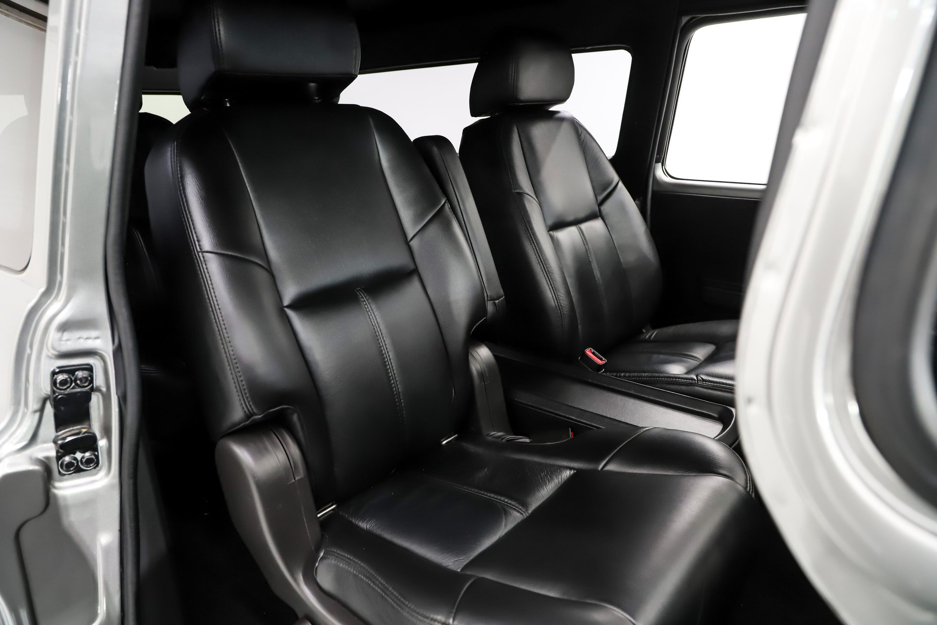 TRUNK COMPARTMENT: This is a very cool feature, a 3 door tailgate! The handles were shaved and the hinges were hidden. The bottom doors open by remote and the top window lifts open with the help of gas struts. Inside is completely custom upholstered. There's plenty of room for cargo and there's a custom box with heat/air vents and a thumping subwoofer.