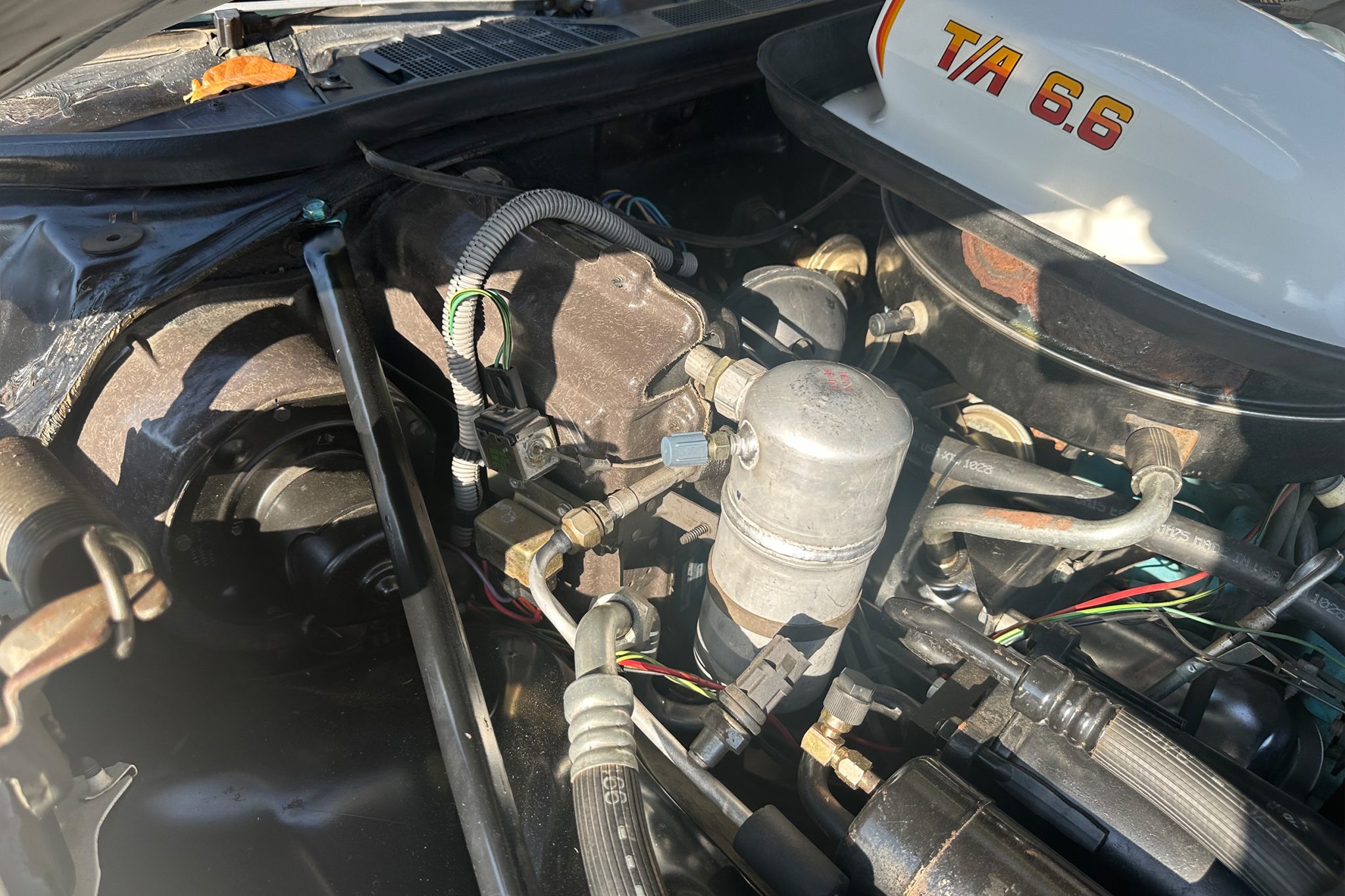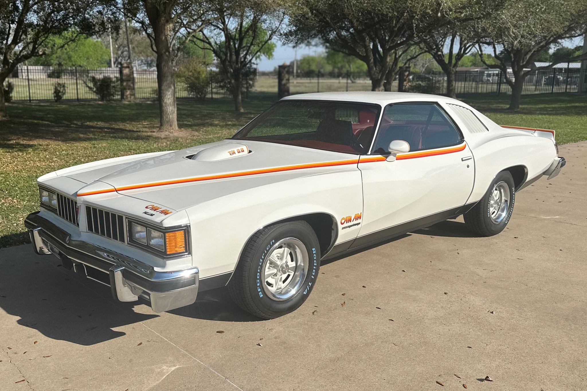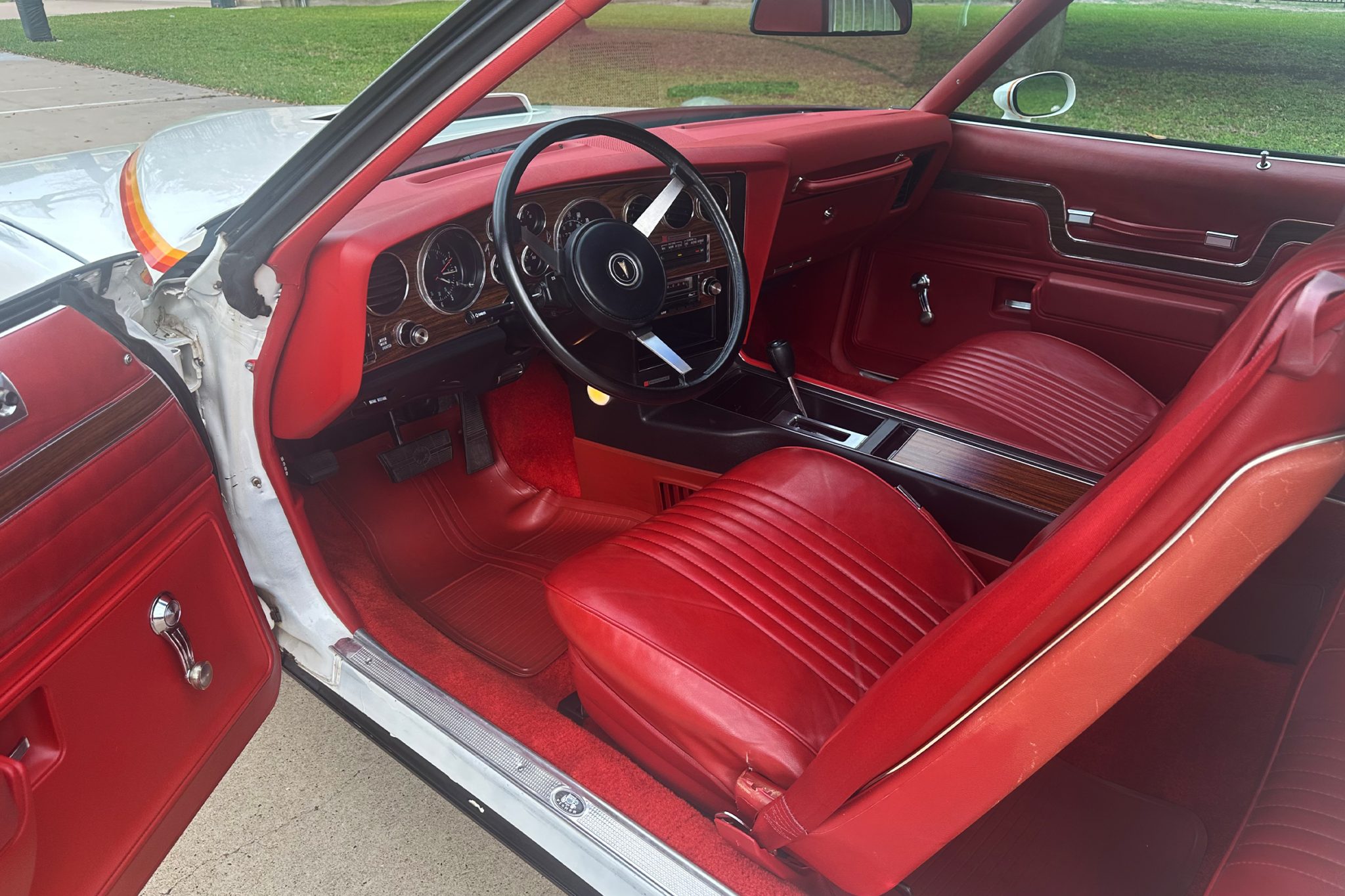 The Can Am package added a Trans Am-sourced 400ci W72 V8, a handling package, accent stripes, a shaker hood, and a rear spoiler. Finished in Cameo White over Firethorn Red vinyl, the car is further equipped with a three-speed automatic transmission, a Safe-T-Track differential, 15″ Rally II wheels, power steering, power-assisted front disc brakes, and cruise control.