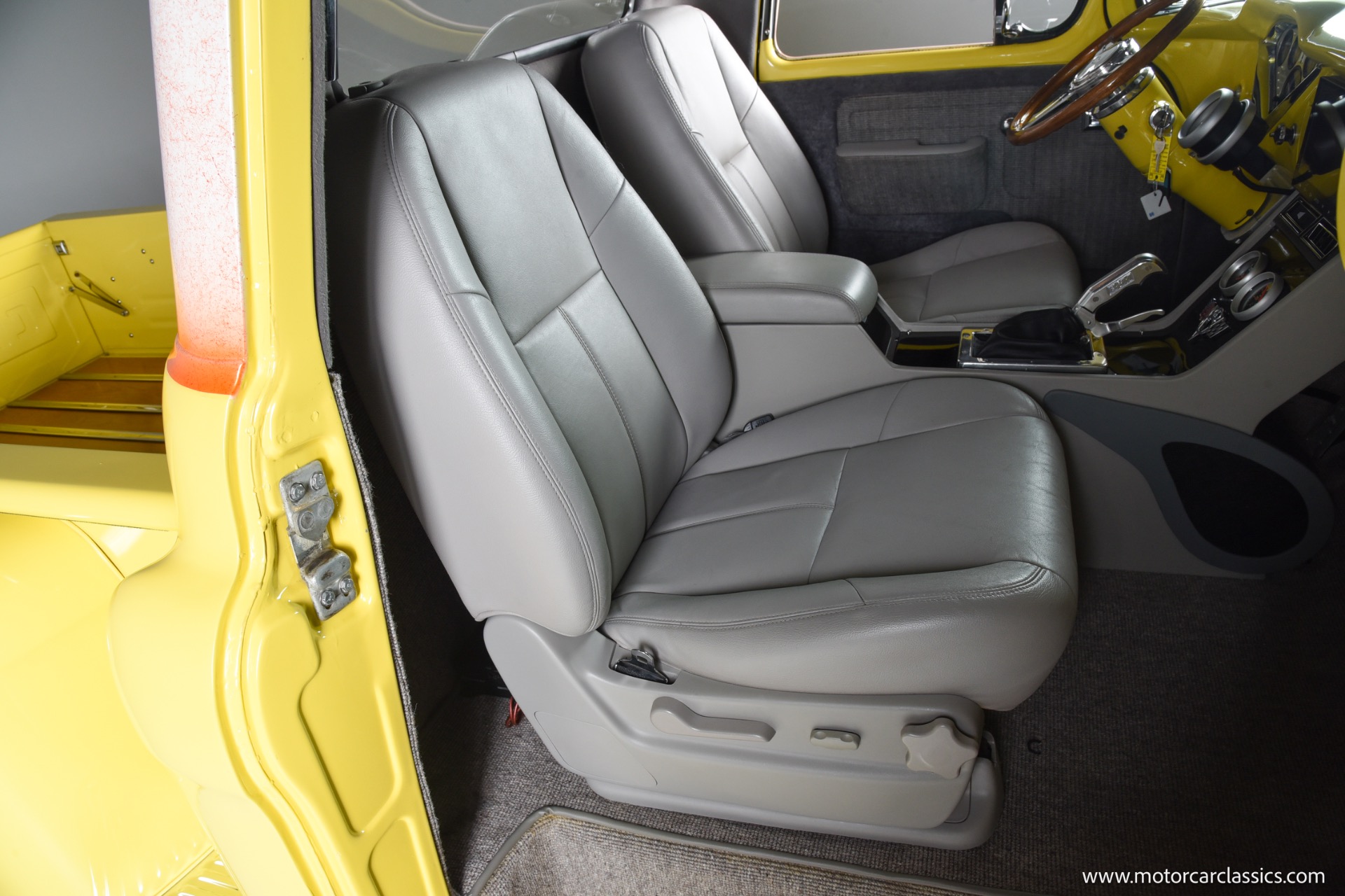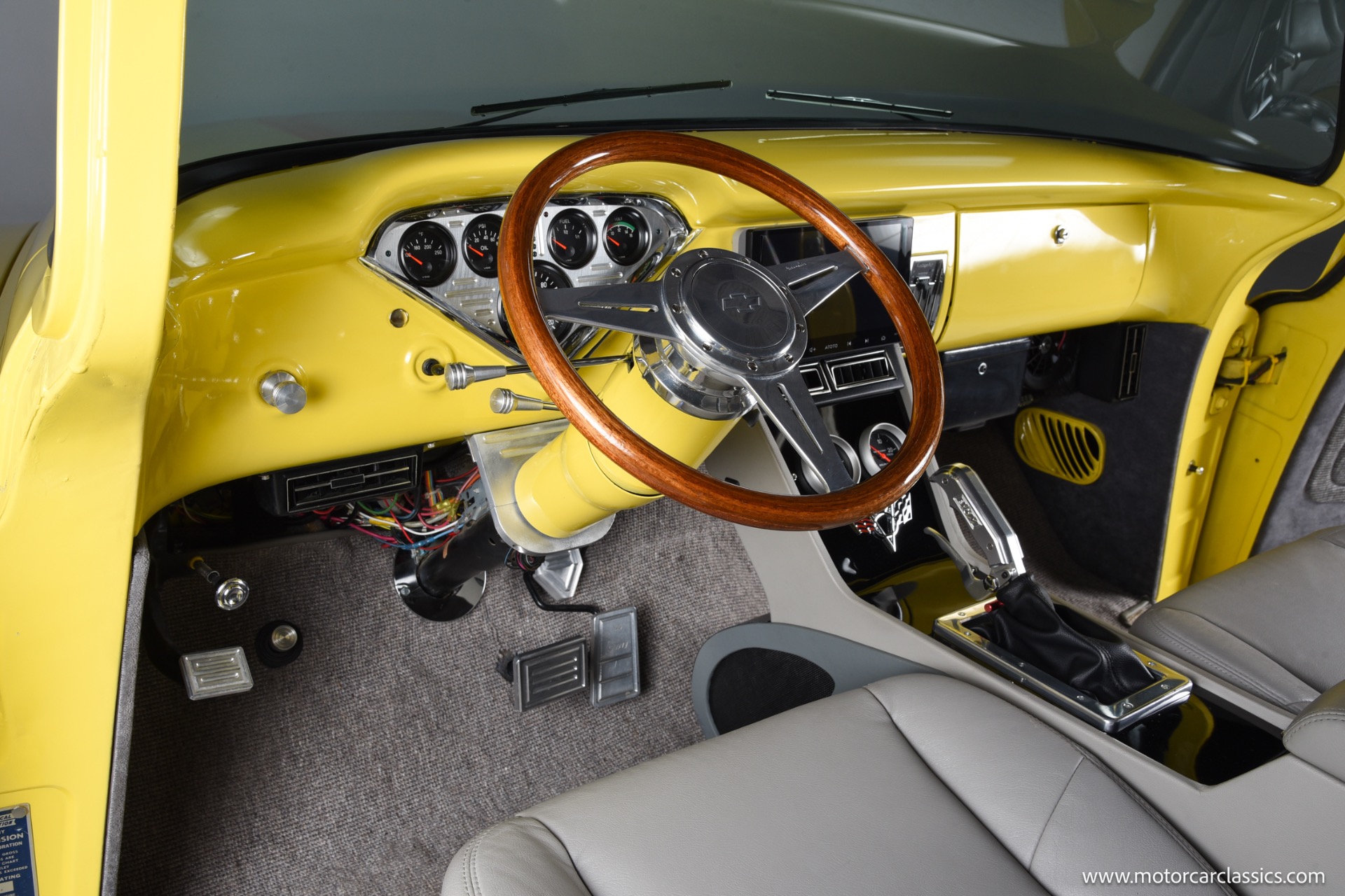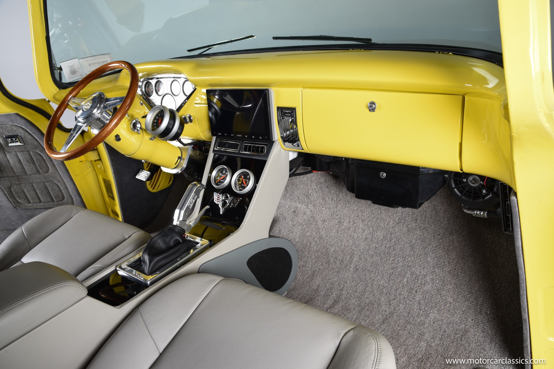 1955 Chevrolet 3100 Pick Up for sale! Motorcar Classics is pleased to offer this road ready and one-of-a-kind 1955 Chevrolet 3100 Pick Up Truck. Options and upgrade inckude: Transverse torsion bar independent front suspension. Power steering, Power brakes, front disc brakes, Corvette 350 cubic inch motor with a B&M Supercharger, Fl Tech fuel injection, dual electric fans, Shaved firewall and inner fenders, alumacoated headers with Magnaflow exhaust, electric exhaust cutouts (switch and remote) Turbo 400 automatic transmission, Vintage Air air conditioning (ice cold) 20 inch staggered Riddler wheels, new tires, lowered suspension. Full custom interior with a hand made one off console, B&M Magnum pistol grip shifter, leather power seats, power windows, tilt steering, 9 inch touch screen with navigation and wireless apple CarPlay and android wireless, backup camera, Pioneer amp and speakers Blaupunkt mini subwoofer (sounds great) power frenched antenna, wood bed, mini tubbed, shaved rear bumper, molded rear roll pan, custom paint. This 3100 has an older paint job that still shows extremely well but does have some touch ups here and there. Absolutely no rust anywhere! This truck runs and drives amazingly, cruises down the highway 75+ with the A/C on all day. This truck comes with a binder filled with ton of service records and receipts. Your inspection is invited!