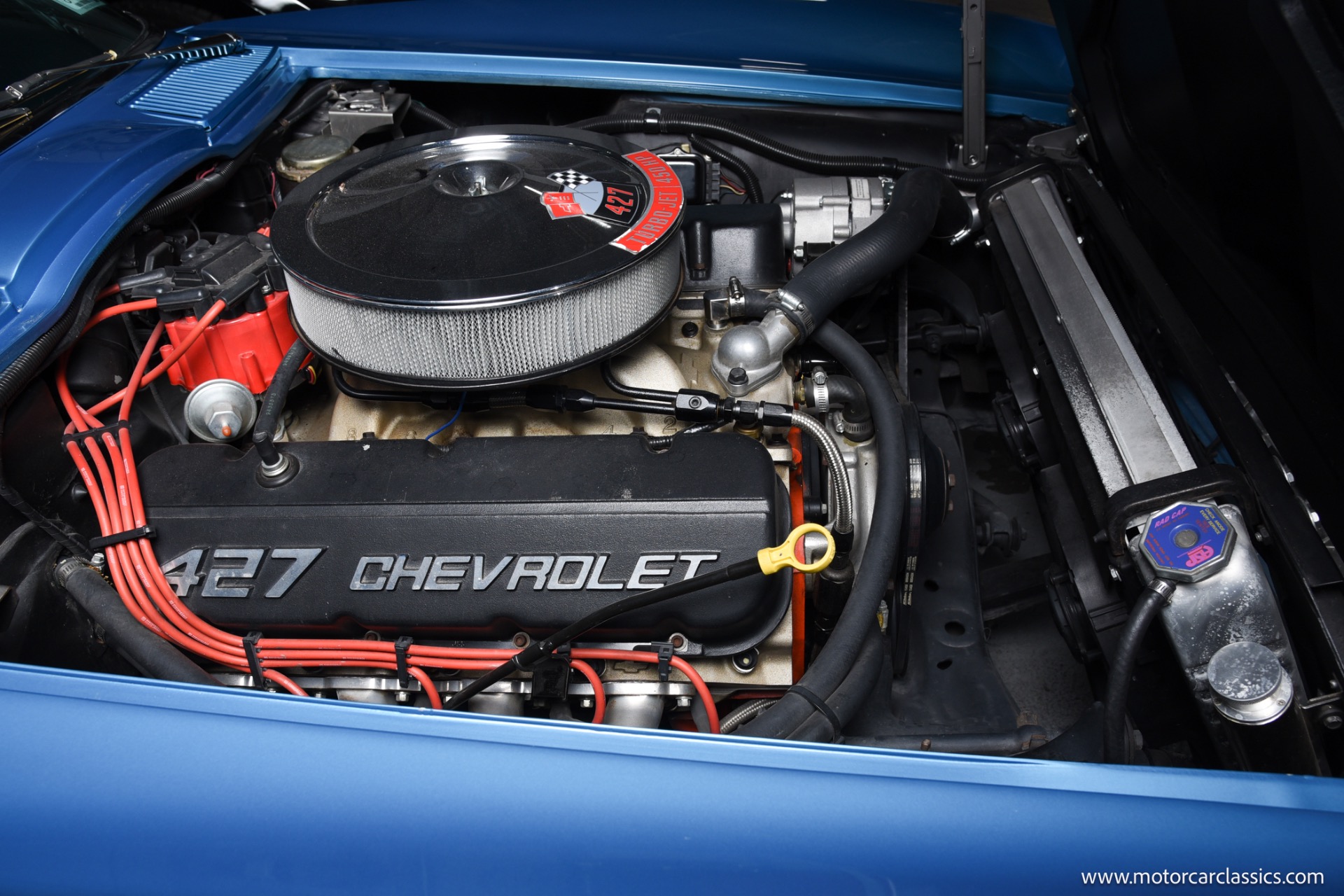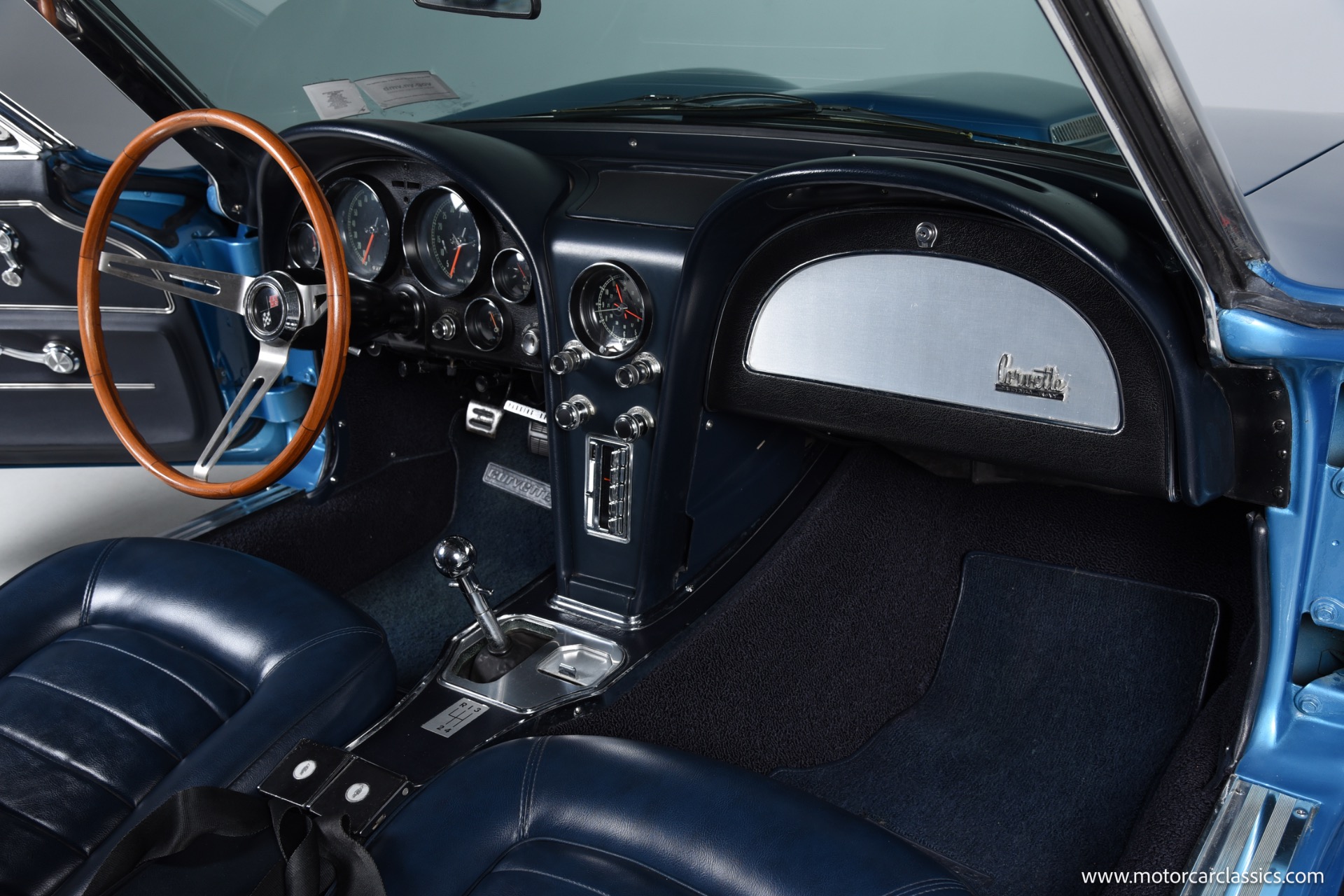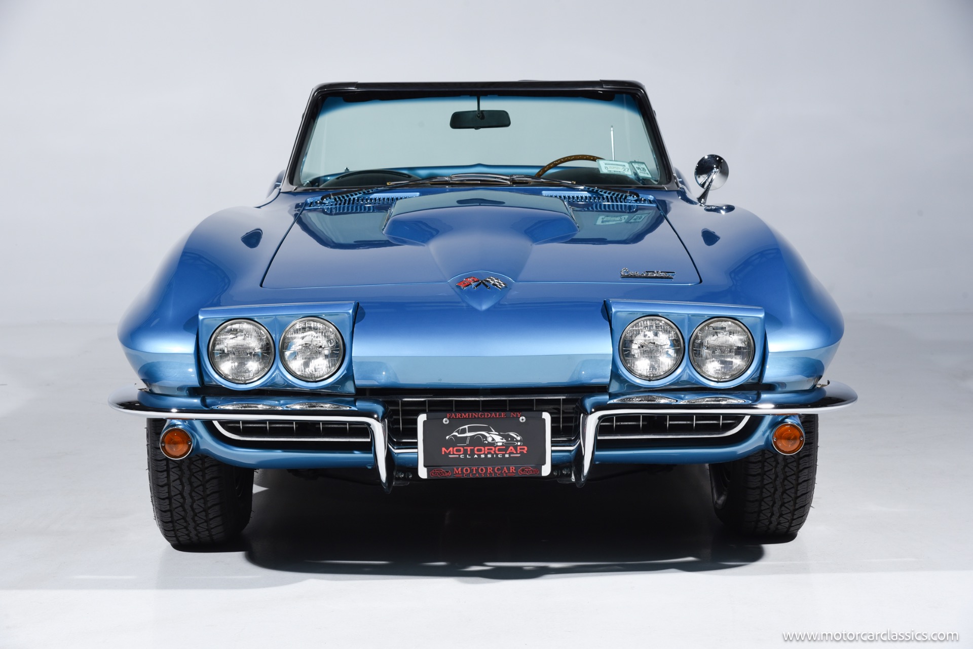 1966 Chevrolet 427 Corvette for sale! Motorcar classics is proud to present this stunning 1966 Corvette convertible finished in dazzling Nassau Blue with a matching blue interior, complemented by both a black soft top and a removable hardtop, providing versatility for any driving occasion.