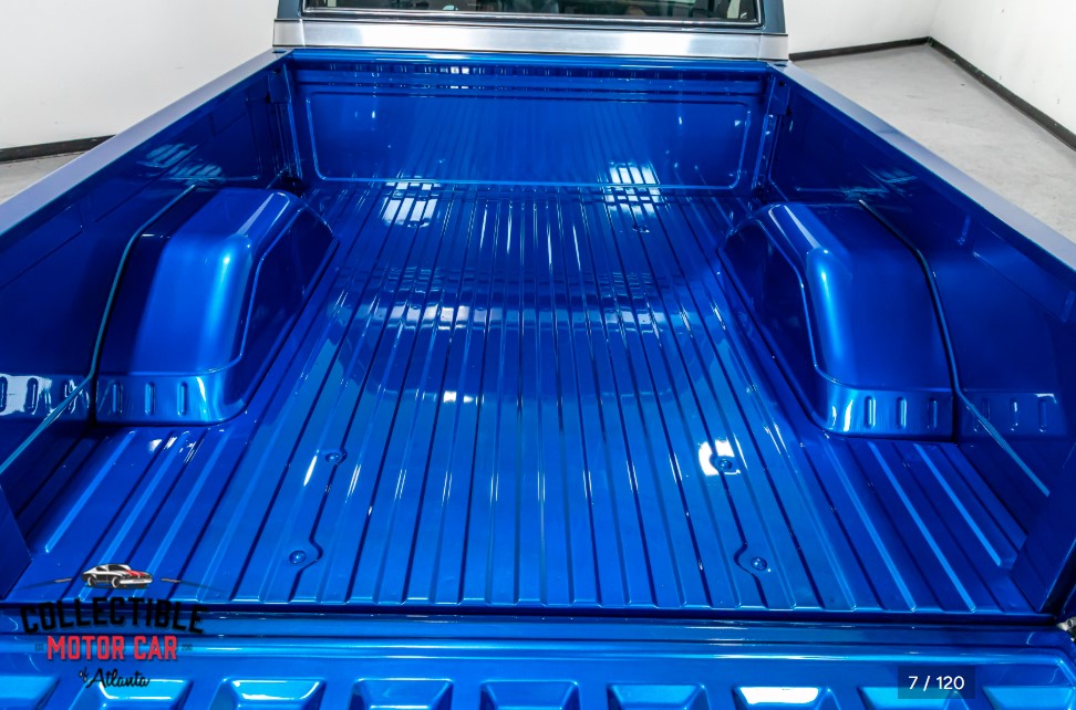 The photos also show a beautifully restored and refinished bed, which is a big part of what makes this build stand out. The bed floor, wheel tubs, and inner panels all present extremely well, giving the truck a finished appearance front to back.