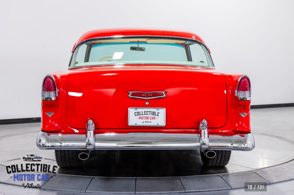 According to the information provided, this is a frame-off build featuring a Corvette engine paired with an automatic transmission, coilover suspension, power disc brakes, all new wiring, dual exhaust, Vintage Heat/A/C, and a long list of cosmetic and interior upgrades. The end result is a sharp, high-impact '55 that keeps the unmistakable Tri-Five personality while offering a far more refined driving experience than stock.