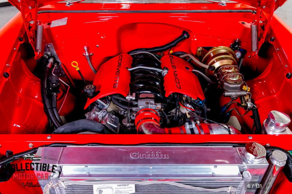 Under the hood is where this '55 really separates itself from a more traditional restoration. Power comes from a Corvette engine, bringing modern small-block Chevrolet performance to this Tri-Five platform. It is paired with an automatic transmission, making the car far more relaxed and enjoyable for cruising.