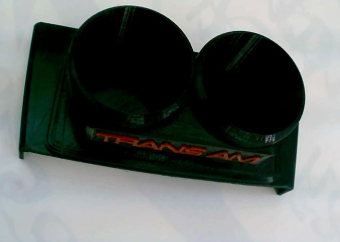 1973 - 1980 Trans Am Center console cup holder. NO cutting or drilling Required Attach with 2 side sticky tape. this can be made to match the color of the interior of your car. The sign on the front can be also be changed to the color you prefer. You Can also customize the word on the front of the holder. You Can put your name wife's name most any wording. this product is 3D printed with PLA+ filament . I can match most colors but it wont be a perfect match but I will get it as close as I can. You Will Need To Specify the color of the cup holder , the front Banner and the name and color of the name. if you Don't Specify your information you will receive A black holder with Black Banner With Trans Am in Red Letters.