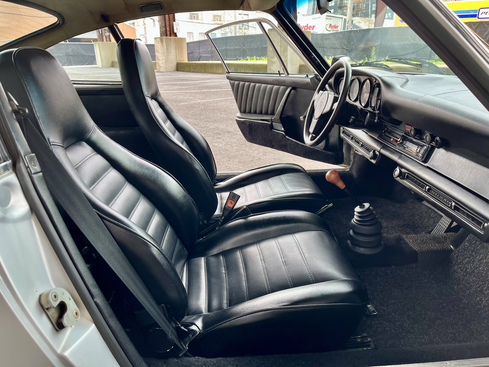 This 1976 Porsche 911S Coupe is powered by a 2.7-liter flat-six mated to a five-speed manual transaxle and is finished in silver over black leatherette.It features a European-specification ride height, 15″ Fuchs alloy wheels, SSI heat exchangers, an M&K exhaust, an upgraded alternator fan, a Blaupunkt stereo, and an aftermarket shift knob.